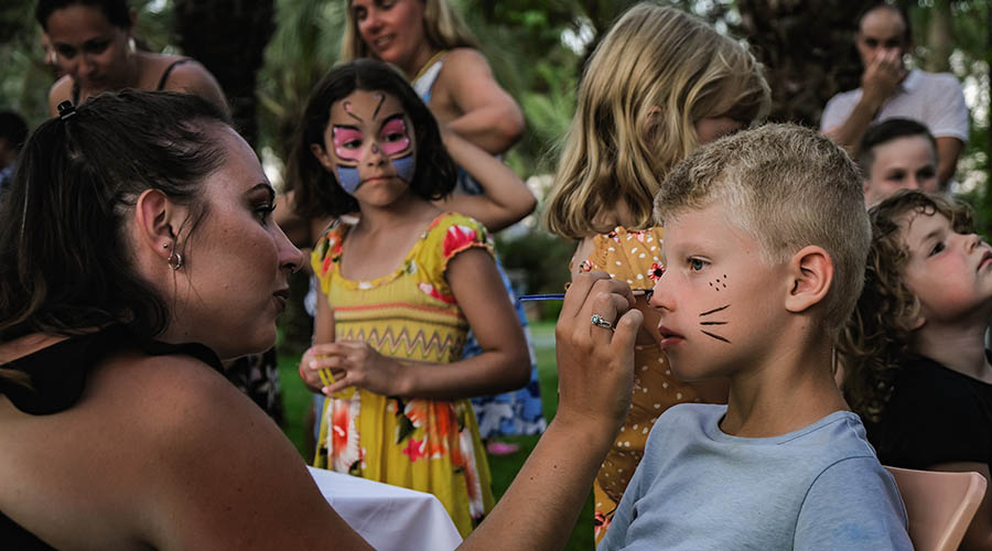 Lors des journées continues, les enfants sont pris en charge par les animateurs y compris pendant le déjeuner (repas inclus en pension complète et en supplément en demi-pension, location). La veillée est organisée afin d'offrir aux parents un moment de détente pour savourer leur repas en toute sérénité. Les animateurs se chargent de faire dîner les enfants (repas inclus en pension complète, demi-pension et en supplément en location).