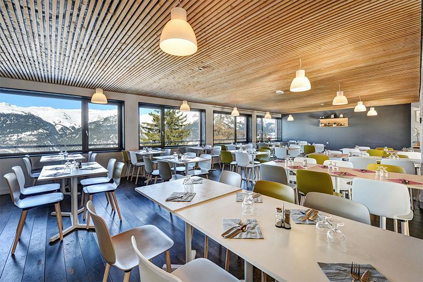Séjour en pension complète : Cuisine soignée. Petit déjeuner, déjeuner et dîner sont servis sous la forme de buffets. Possibilité de déjeuner « pique-nique » à emporter sur les pistes. Vous apprécierez aussi la salle panoramique du restaurant.