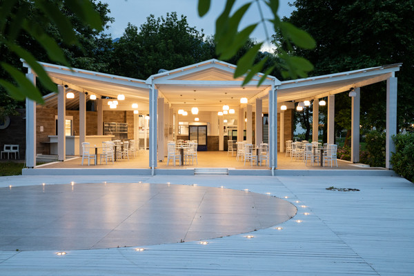 Restaurant principal avec terrasse. Buffet avec cuisine méditerranéenne.