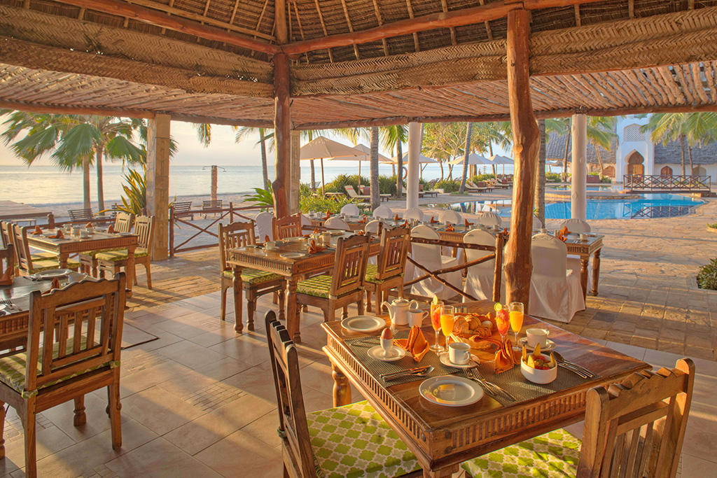 Lors de votre séjour, profitez de la formule « Tout compris ». L'ensemble de vos repas sera servi au restaurant buffet principal « Mwambao », à côté de la piscine. Une cuisine internationale et régionale vous sera proposée, composée de produits frais locaux avec une attention particulière portée aux fruits de mer frais. Des spectacles et des dîners thématiques seront aussi organisés. La formule « Tout compris » débute et se termine aux mêmes horaires les jours d'arrivée et de départ.