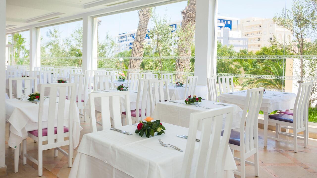 Durant votre séjour, vous profiterez de la formule « tout compris » servie sous forme de buffet au restaurant principal de l'hôtel. Cette formule comprend le petit déjeuner, le déjeuner et le diner ainsi qu'une sélection de boissons et de collations. Boissons incluses :- Eau, jus de fruits, sodas, rafraîchissements, vin, bière, alcools locaux, café, thé - Sélection de boissons locales et internationales avec ou sans alcool de 9h à minuit (consommations payantes en dehors de ces horaires) L'hôtel Hôtel Marhaba Club 4* dispose d'un restaurant et 3 bars : - Restaurant Buffet avec petits déjeuners, déjeuners et dîners servis sous la forme de buffets variés : 7h-10h, 12h30-14h30 et 18h-21h- Lobby Bar « Marhaba » avec service de restauration rapide – Inclus dans la formule. Les périodes d'ouverture et les horaires peuvent être modifiés selon la saison et vous seront confirmés à l'hôtel le jour de votre arrivée. Vos activités et loisirs :