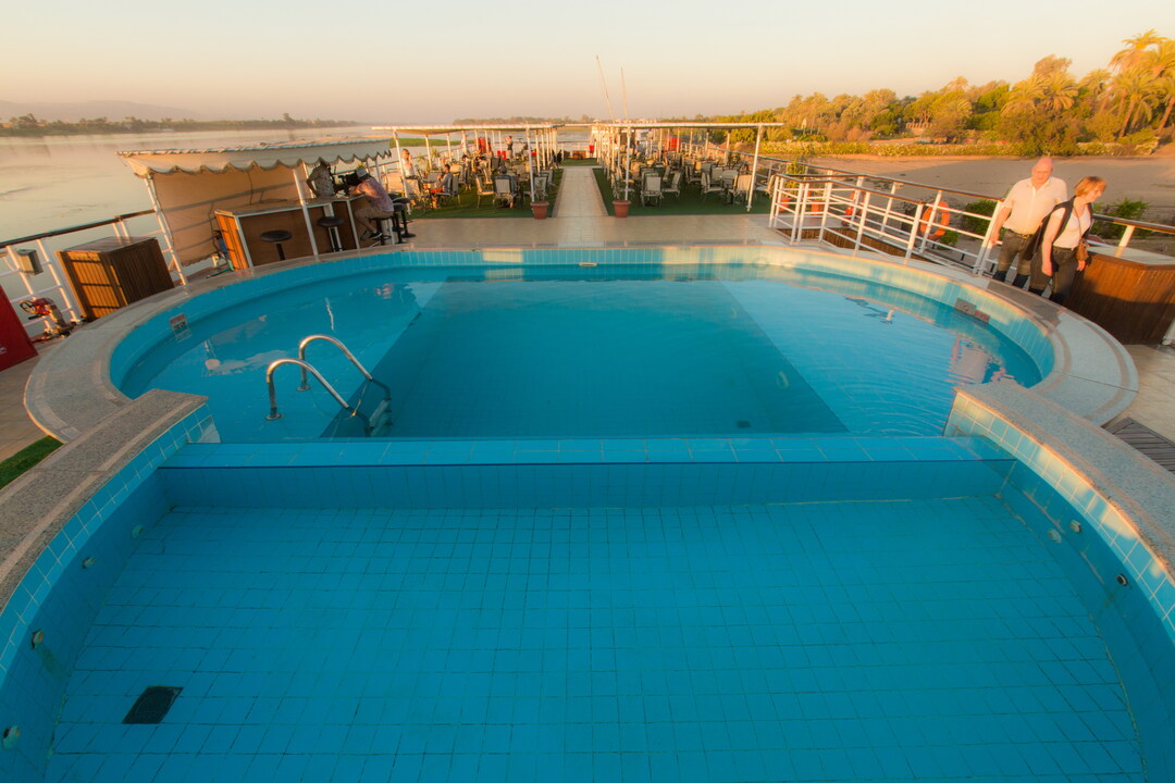 L'eau de la piscine sur nos bateaux classiques n'est changée qu'une fois par semaine (généralement à Assouan).