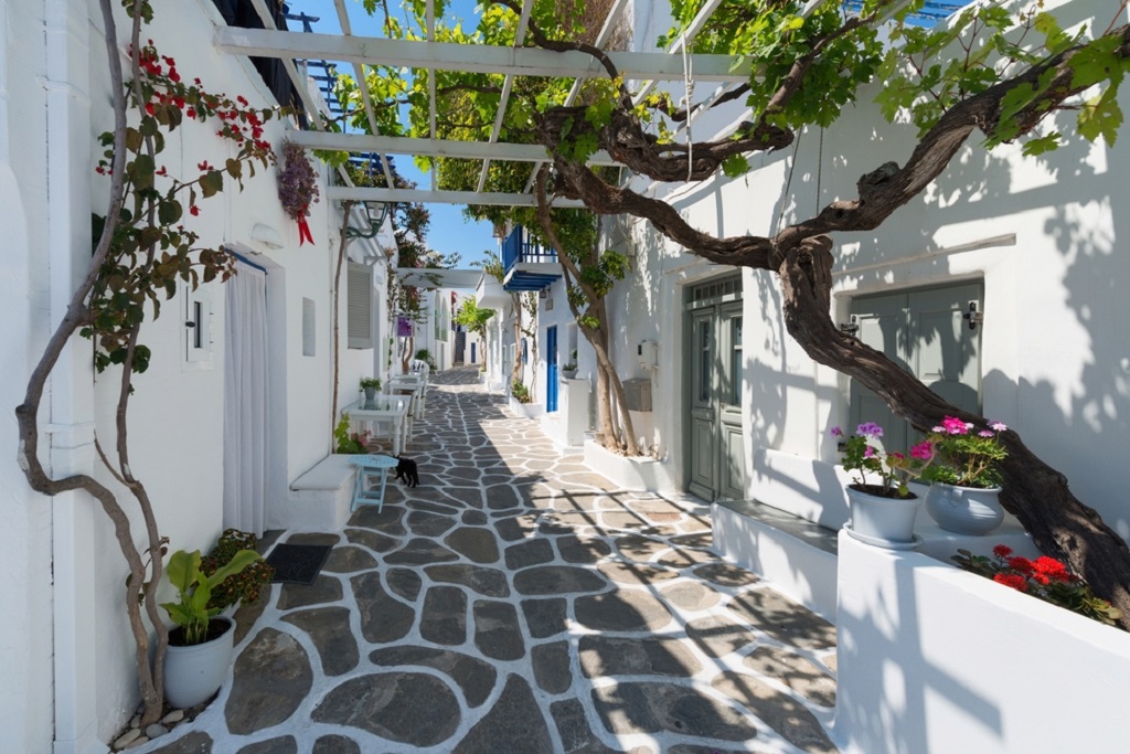 Petit-déjeuner. Séjour libre pour découvrir l'île de Paros. Dans l'Antiquité, Paros était célèbre pour ses carrières de marbre blanc, dit « Parien » d'où le nom de Paros… Certains des chefs-d'œuvre de la sculpture grecque antique ont d'ailleurs été réalisés avec ce matériau translucide d'un blanc pur comme la Vénus de Milo ou la Victoire de Samothrace… Aujourd'hui, l'île vous invite à découvrir sa beauté naturelle, ses 120 km de côtes et ses plages aux eaux cristallines, ses sentiers byzantins reliant les villages traditionnels… Parikia, la capitale, est une jolie ville qui a su conservé son charme traditionnel, avec ses petites maisons blanches, ses moulins à vent traditionnels, ses belles cafétérias en bord de mer et ses rues pavées et très animées. Rendez-vous au musée archéologique et au monastère de Panagia Ekatontapiliani " l'église aux cent portes ". Si vous préférez la tranquillité, optez pour les villages de Lefkes et Marpissa, vous verrez ainsi deux visages de l'île. À proximité de Parikia, prenez du bon temps sur les plages de Livadia, Marchello ou Kolympithres avec de petites criques de sable qui se succèdent. Si vous y arrivez tôt, vous aurez peut-être la chance d'avoir votre propre petite baie privée. Pour les amateurs de sports nautiques Golden Beach est « The Place to Be ». Vous pourrez aussi visiter les ruines d'Asklepieion et l'ancien temple d'Apollon pythique.