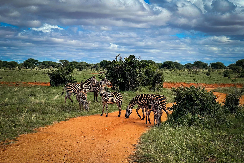 Désertique et plus plat que son voisin, le Tsavo Est constitue la plus grande zone protégée du Kenya et abrite la plupart des plus grands mammifères : de vastes troupeaux d'éléphants, rhinocéros, buffles, lions, léopards, groupes d'hippopotames, crocodiles, cobes d'eau, petits koudous… et multitude d'oiseaux avec près de 500 espèces enregistrées. Vous aurez peut-être le temps de découvrir le plateau de Yatta, long de 300 kilomètres, la plus longue coulée de lave au monde… En fin de journée, au coucher du soleil, vous pourrez observer les hippopotames sortant de l'eau pour aller chasser pendant la nuit.