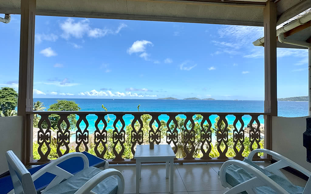 Chambres très spacieuses avec vue sur la mer directe. Les chambres font directement face à la plage d'Anse Patates .