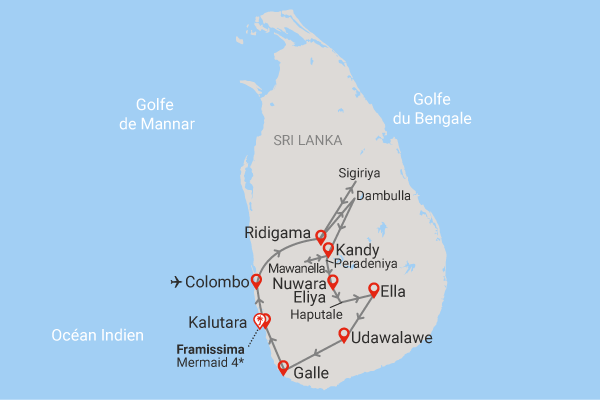 Ce programme est une invitation à parcourir le Sri Lanka autrement... C'est une véritable exploration immersive de l'île avec des découvertes hors sentiers battus et des incontournables revisités : Rocher du Lion, visite des grottes rupestres de Dambulla, cérémonie de Puja au temple de Kandy, balade au jardin botanique de Peradeniya, ascension vers la très ‘british' Nuwara Eliya, arrêt au village d'Ella et ses paysages grandioses, safari éléphants au parc d'Udawalawe... Votre voyage est ponctué de rencontres locales et d'expériences authentiques : nuit chez l'habitant, pèlerinage dans un temple bouddhiste, déjeuners locaux, trajet en train au coeur des plantations de thé, découverte d'un centre de protection d'éléphanteaux... Pour finir par un séjour sur la côte sud du Sri Lanka. Emotions 100% garanties !!!