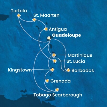 Vols réguliers au départ de Paris et transferts en autocar au port de Pointe-à-Pitre ou, selon le programme de votre croisière, au port de Fort de France.