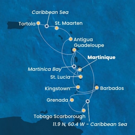 11.9 N, 60.4 W - Mer des Caraïbes: « Mer d'étoiles »
