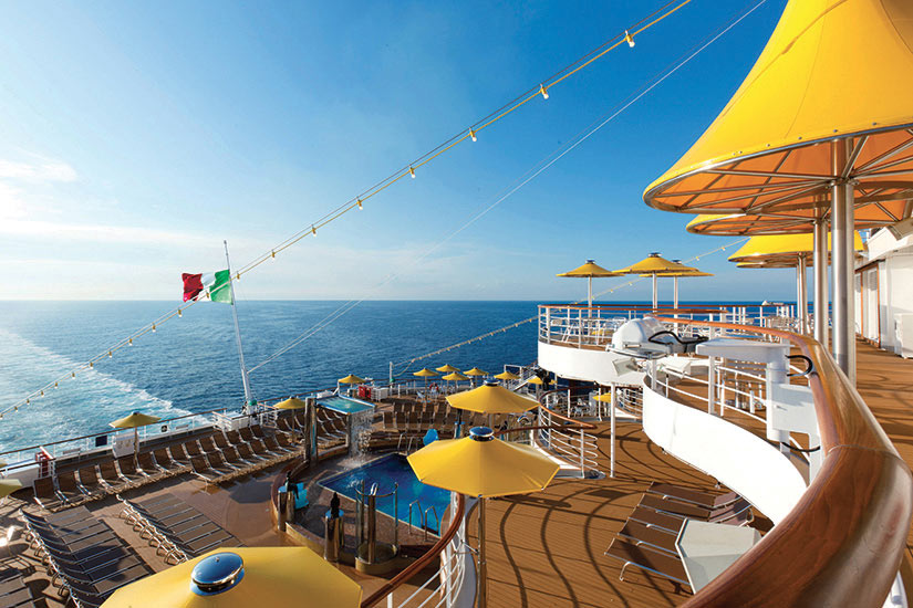 Les équipements du bord pendant la croisière (piscine, chaise longue, gymnase,...)