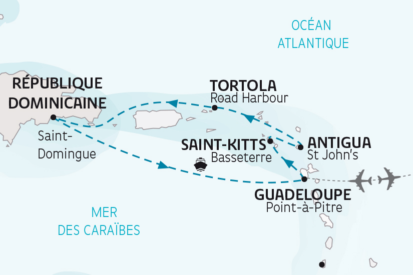 L'itinéraire de la croisière, d'île en île, dans l'archipel des Petites Antilles