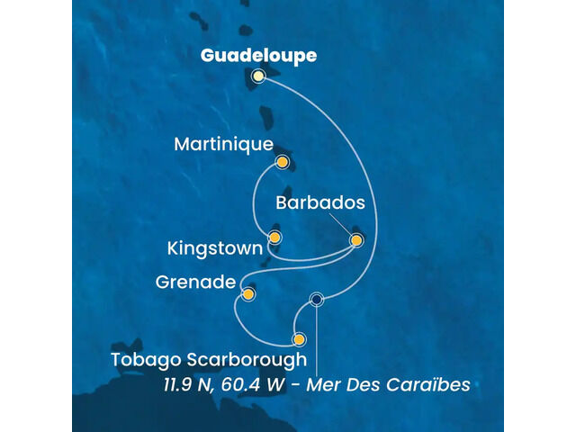Vols réguliers au départ de Paris et transferts en autocar au port de Pointe-à-Pitre ou, selon le programme de votre croisière, au port de Fort de France.