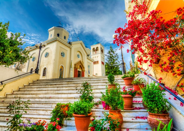 Le matin, excursion incluse : Kos et Asclépeion, un voyage dans le monde d'Hippocrate. Situé sur une colline entourée d'une forêt de cyprès qui surplombe la mer Égée, l'Asclépeion de Kos est un vaste sanctuaire dédié au dieu guérisseur, Asclépios. Du fait de son terrain en pente, le sanctuaire s'étend sur quatre niveaux qui communiquaient par des escaliers monumentaux et offre une vue remarquable sur le golfe de Kerameikos et les côtes du Moyen-Orient. Puis vous visiterez la vieille ville de Kos et y admirerez des vestiges antiques et médiévaux tels que la porte des Péages, la porte principale des anciennes fortifications, l'antique Agora et le château médiéval de Neratzia, qui fût construit par les chevaliers de St Jean. Enfin, profitez d'une pause à l'ombre du platane d'Hippocrate, vieux de 2500 ans. On raconte qu'Hippocrate lui-même aurait enseigné la médecine et examiné ses patients sous cet arbre.