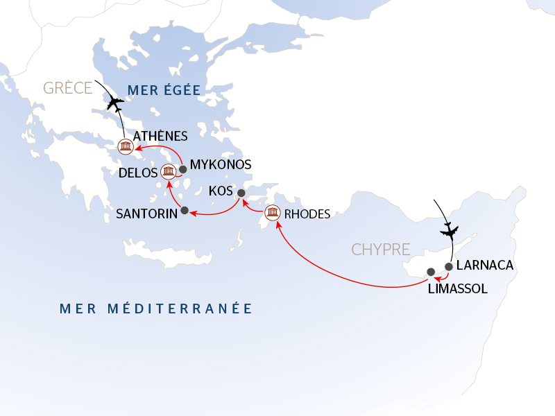 les vols Paris/Larnaca et Athènes/Paris - les taxes d¿aéroport (99 € - tarif 2022) - les transferts aéroport/quai/ aéroport - la croisière en pension complète du dîner du 1er jour au petit déjeuner buffet du dernier jour - les boissons incluses à bord (hors cartes spéciales) - le logement en cabine double climatisée avec douche et WC - le cocktail de bienvenue - les excursions mentionnées au programme - l'assistance de l'équipe d'animation à bord - la soirée de gala - la soirée folklorique - l'assurance assistance/rapatriement - les taxes portuaires.