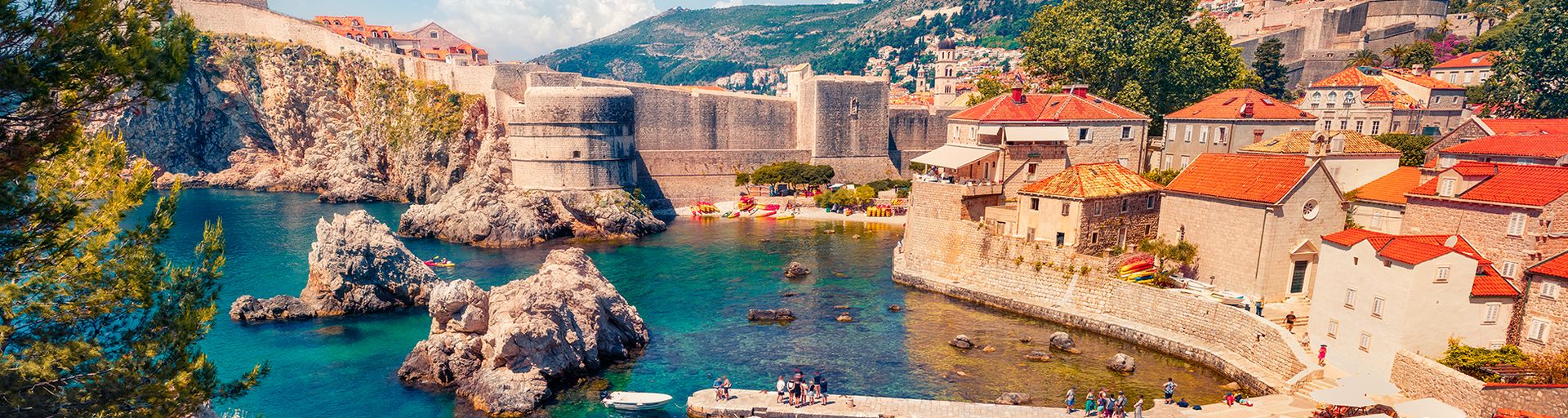 Surnommée "la perle de l'Adriatique", la ville s'étend face à la mer, au pied d'une chaîne montagneuse calcaire aux contours déchiquetés. L'ancienne cité de Raguse est renommée pour ses remparts datant de l'époque médiévale, ses nombreux édifices préromans, gothiques, de la Renaissance et baroques.