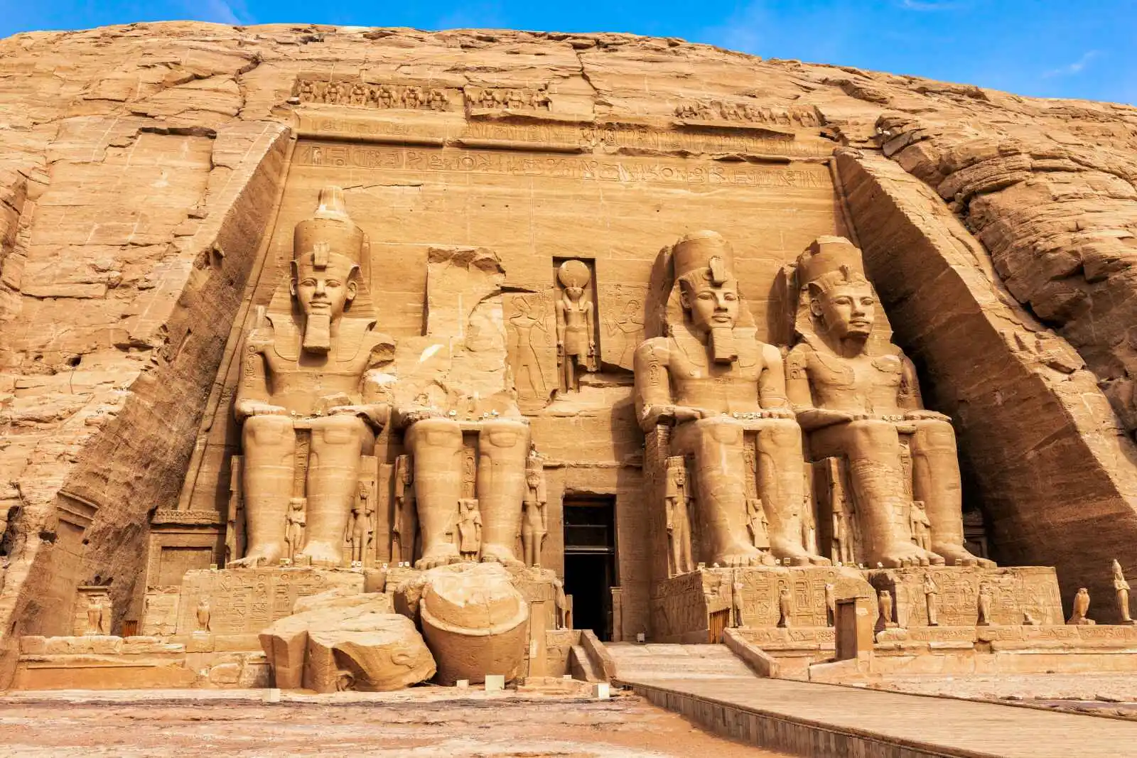 Jour 5 : ABOU SIMBEL (580 km)Avant l'aube, départ en bus pour les temples d'Abou Simbel (UNESCO). Nés de la volonté de Ramsès II, ces chefs-d'œuvre architecturaux ont été creusés, à l'origine, à même le roc. Pour qu'ils ne soient pas engloutis par la montée des eaux suite à la construction du Haut-Barrage, près de 3 000 personnes travaillèrent 3 ans durant sous l'égide de l'UNESCO pour les découper en d'immenses blocs… et les remonter dans leur orientation initiale 65 m plus haut, accolés à une colline artificielle. Déjeuner à bord, puis dans l'après-midi, départ pour une promenade en felouque. Dîner et nuit à bord. En soirée, possibilité d'assister au spectacle Son et Lumières au temple de Philæ (avec supplément, à réserver et à régler sur place).