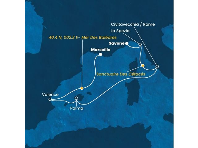L'horaire est indicatif et pourrait varier. En cas de conditions météorologiques défavorables, l'expérience pourrait subir des variations ou être suspendue. Une fois à bord, nous vous conseillons de consulter notre Costa App pour vous tenir toujours au courant.