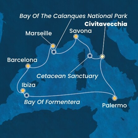 L'horaire est indicatif et pourrait varier. En cas de conditions météorologiques défavorables, l'expérience pourrait subir des variations ou être suspendue. Une fois à bord, nous vous conseillons de consulter notre Costa App pour vous tenir toujours au courant.
