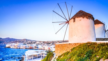 L'après-midi, excursion incluse : tour de l'île de Mykonos. Star incontestable de l'archipel des Cyclades, Mykonos est aussi une île tout en contraste, un paradis blanchi à la chaux en mer Égée. Vous vous promènerez dans le dédale de ruelles étroites de sa capitale, construites pour perdre les pirates qui menaçaient l'île aux XVIII et XIXème siècles. Vous admirerez ses maisons blanches aux portes et cadres de fenêtres colorés, ses bougainvilliers en fleurs et ses églises cachées. Vous visiterez le monastère de Panagia Tourliani, consacré à la Dormition de la Vierge Marie. Érigé en 1542, vous serez impressionné par son aspect simple mais imposant.