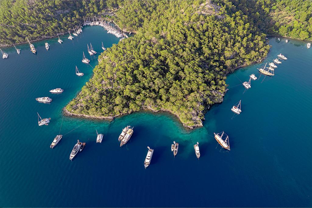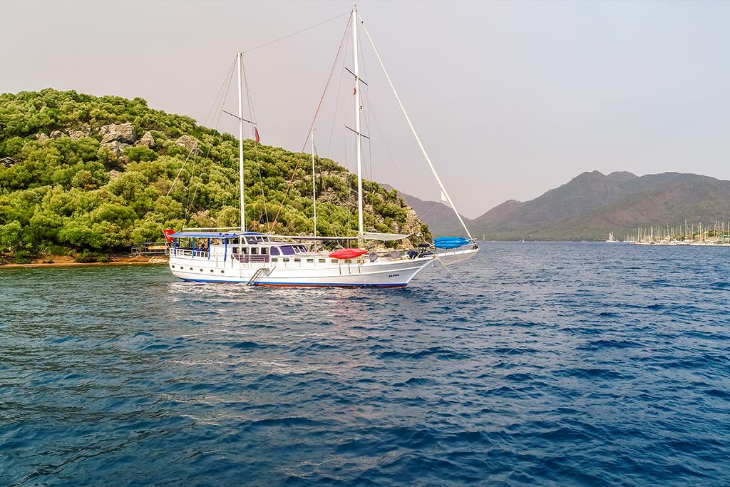 Petit-déjeuner puis navigation vers la baie de Bedri Rahmi, qui tient son nom d'un artiste turc. Vous pourrez voir ses célèbres peintures rupestres. Après le déjeuner, continuation vers l'île de Göcek. Possibilité de visiter le centre-ville. Dîner et nuit à bord.