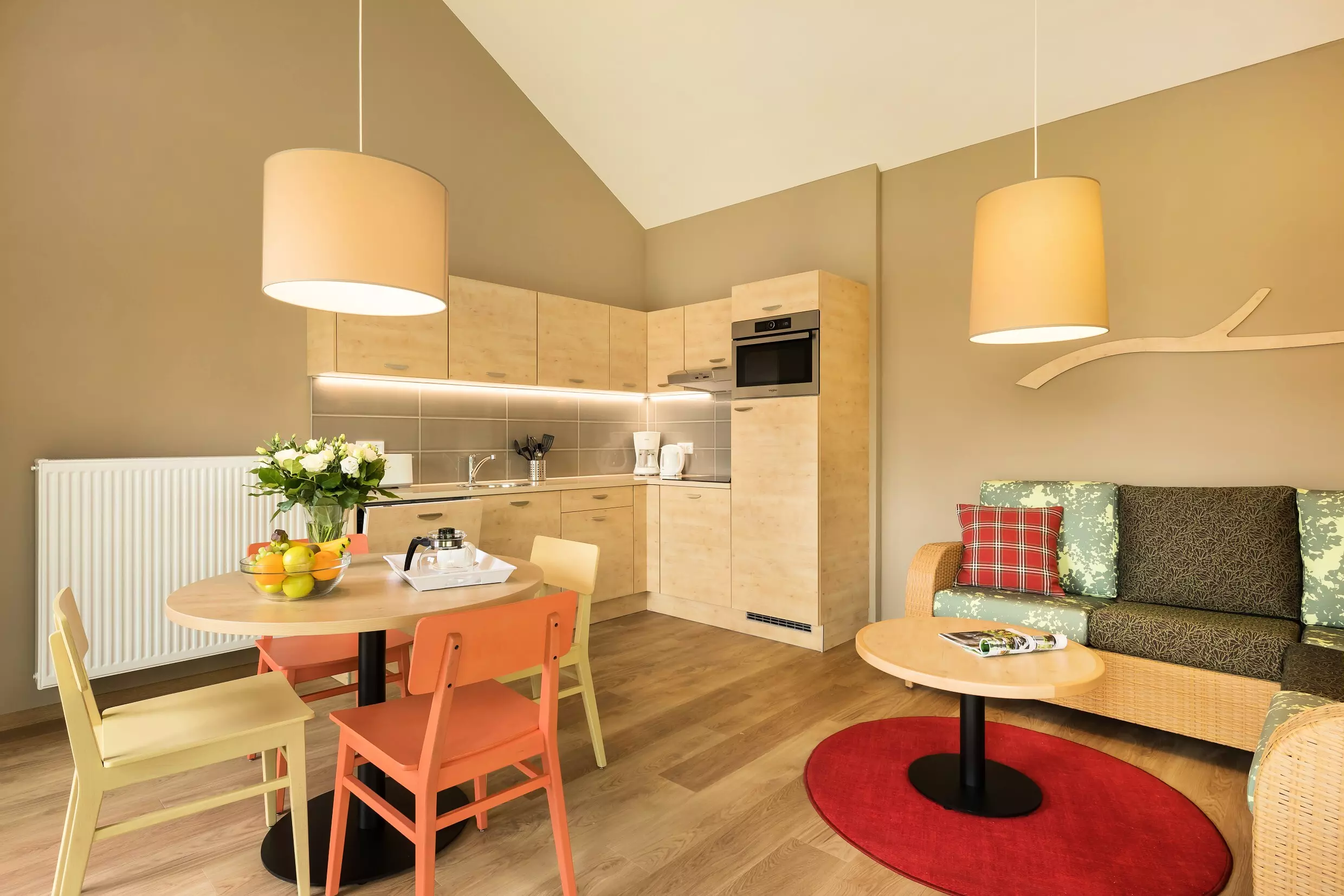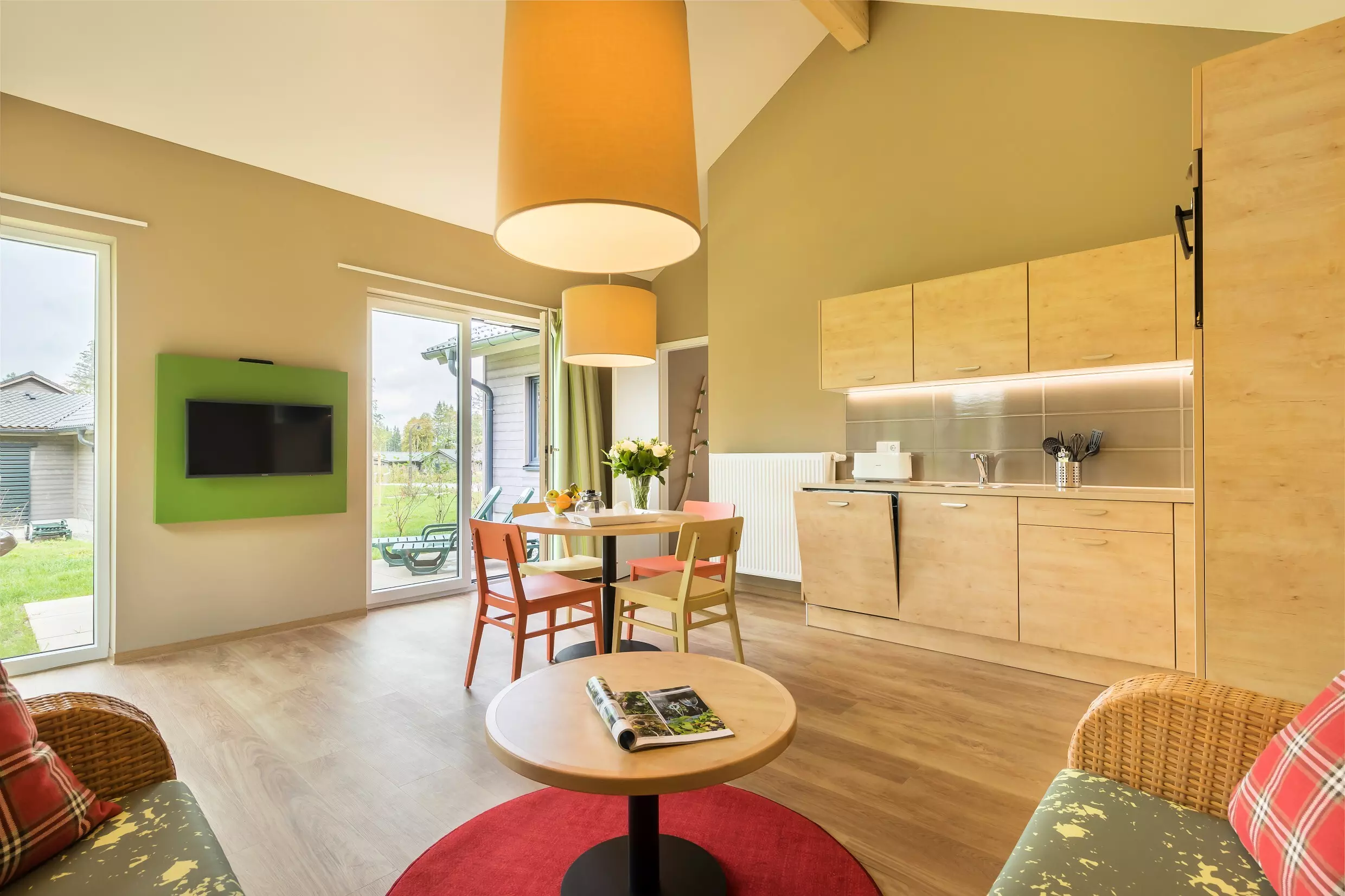 Le cottage est équipé d'une télévision, d'une cheminée, d'un sauna, d'un coffre-fort, d'un lave-vaisselle, d'une plaque vitrocéramique à 4 foyers, d'un micro-ondes avec fonction grill, d'un réfrigérateur avec freezer, d'une bouilloire, d'une machine à café à filtre (pas de Dolce Gusto), d'un grille-pain, d'un wok et de mobilier de jardin + chaises longues sur la terrasse.