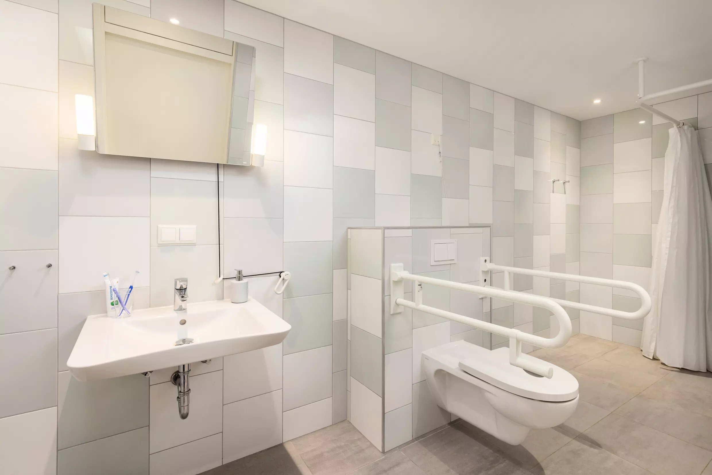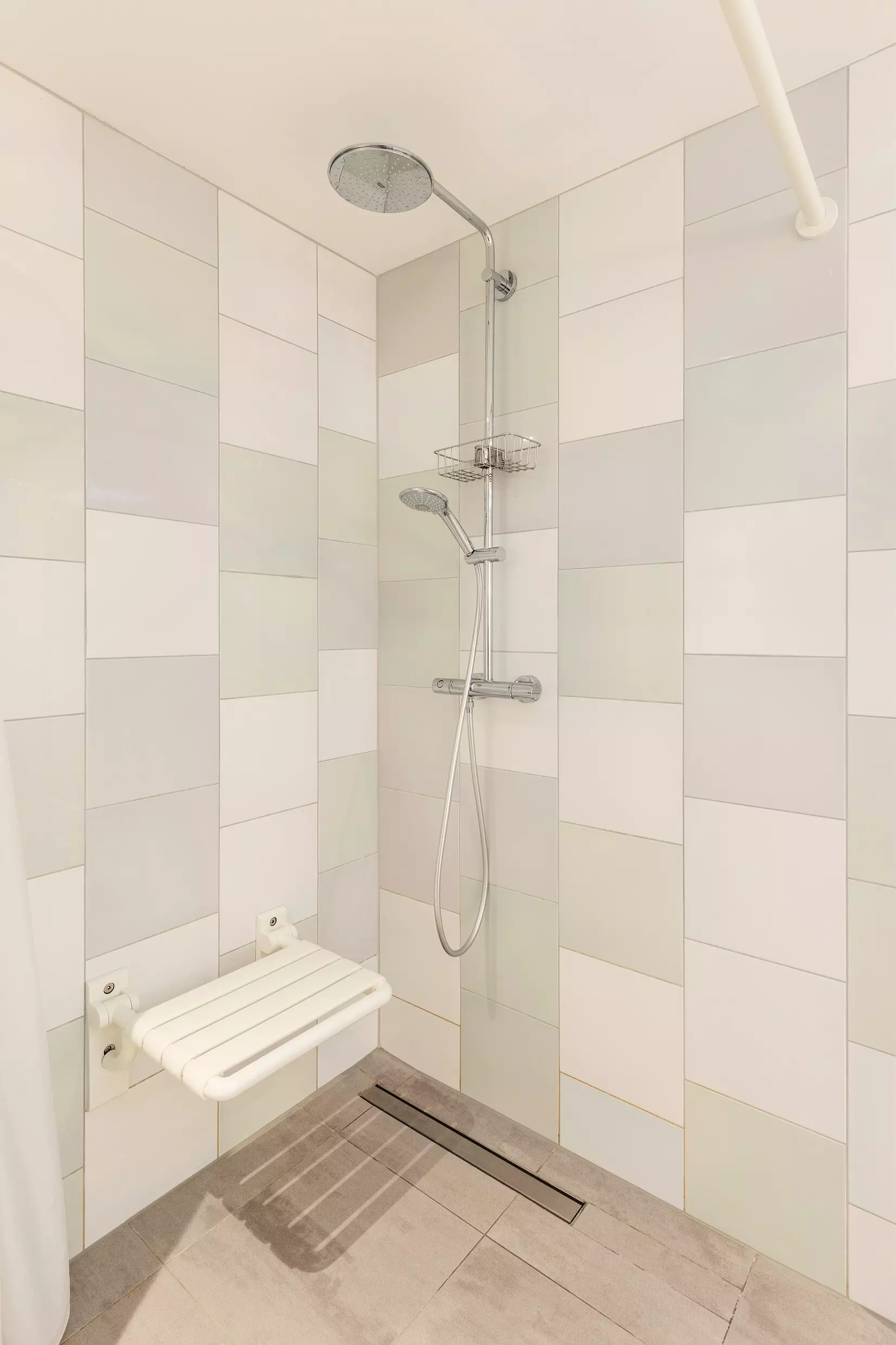 • Salle de douche accessible PMR avec WC et barres de maintien