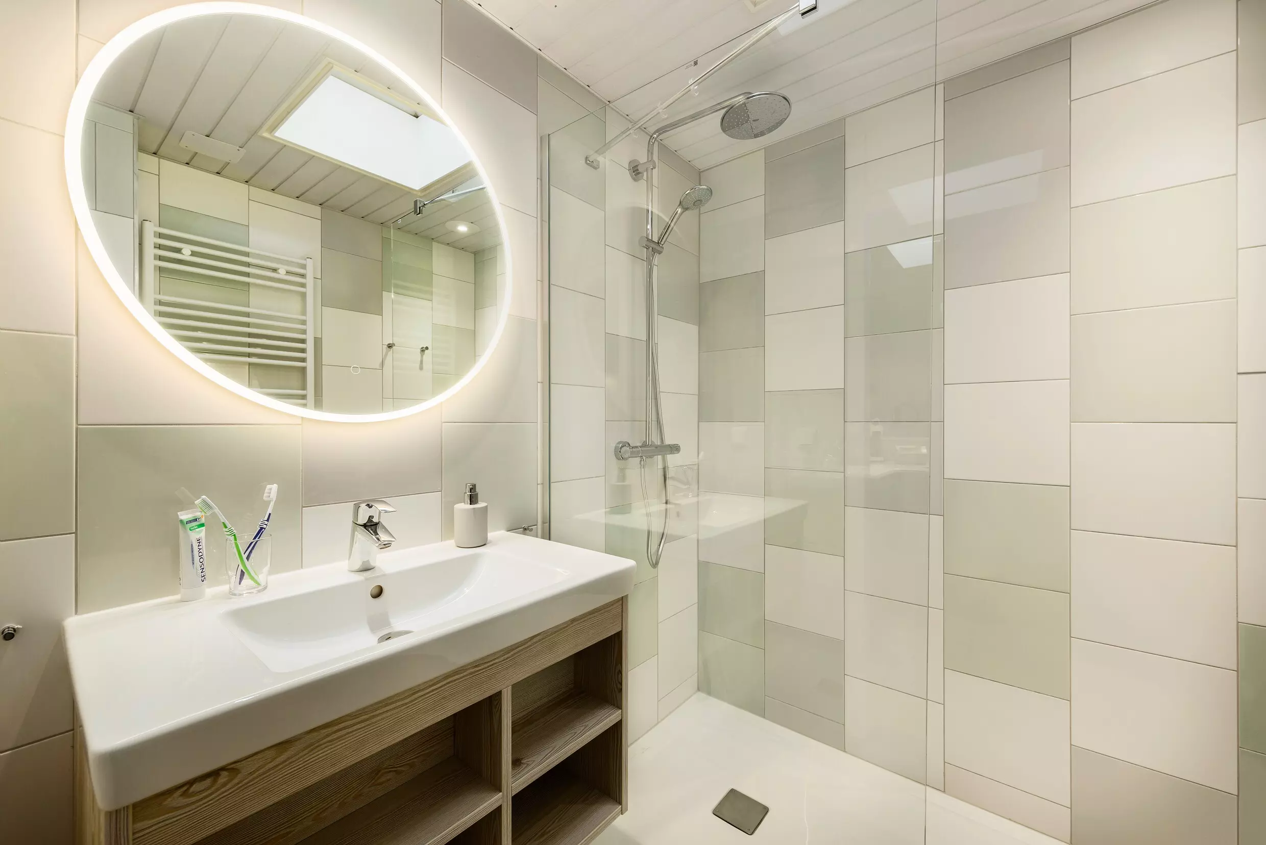 • Salle de bain avec douche de pluie, baignoire à remous, sauna à infrarouge, WC