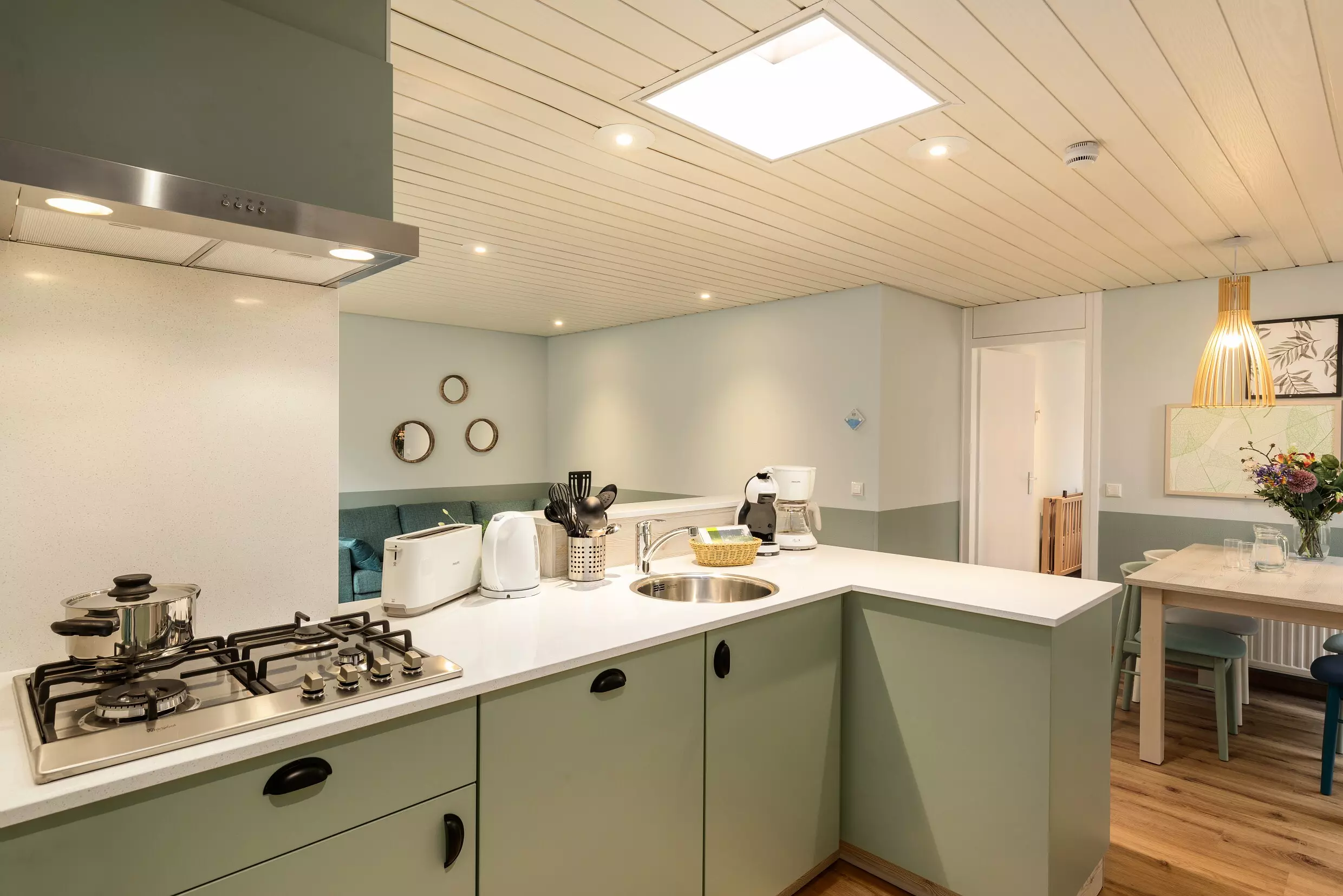 La maison est équipée d'une télévision, d'une plaque de cuisson, d'un réfrigérateur, d'un lave-vaisselle, d'un micro-ondes combiné, d'une NESCAFÉ Dolce Gusto, d'une cafetière à filtre, d'un grille-pain, d'un presse-agrumes, d'une bouilloire et de mobilier de jardin sur le pont.