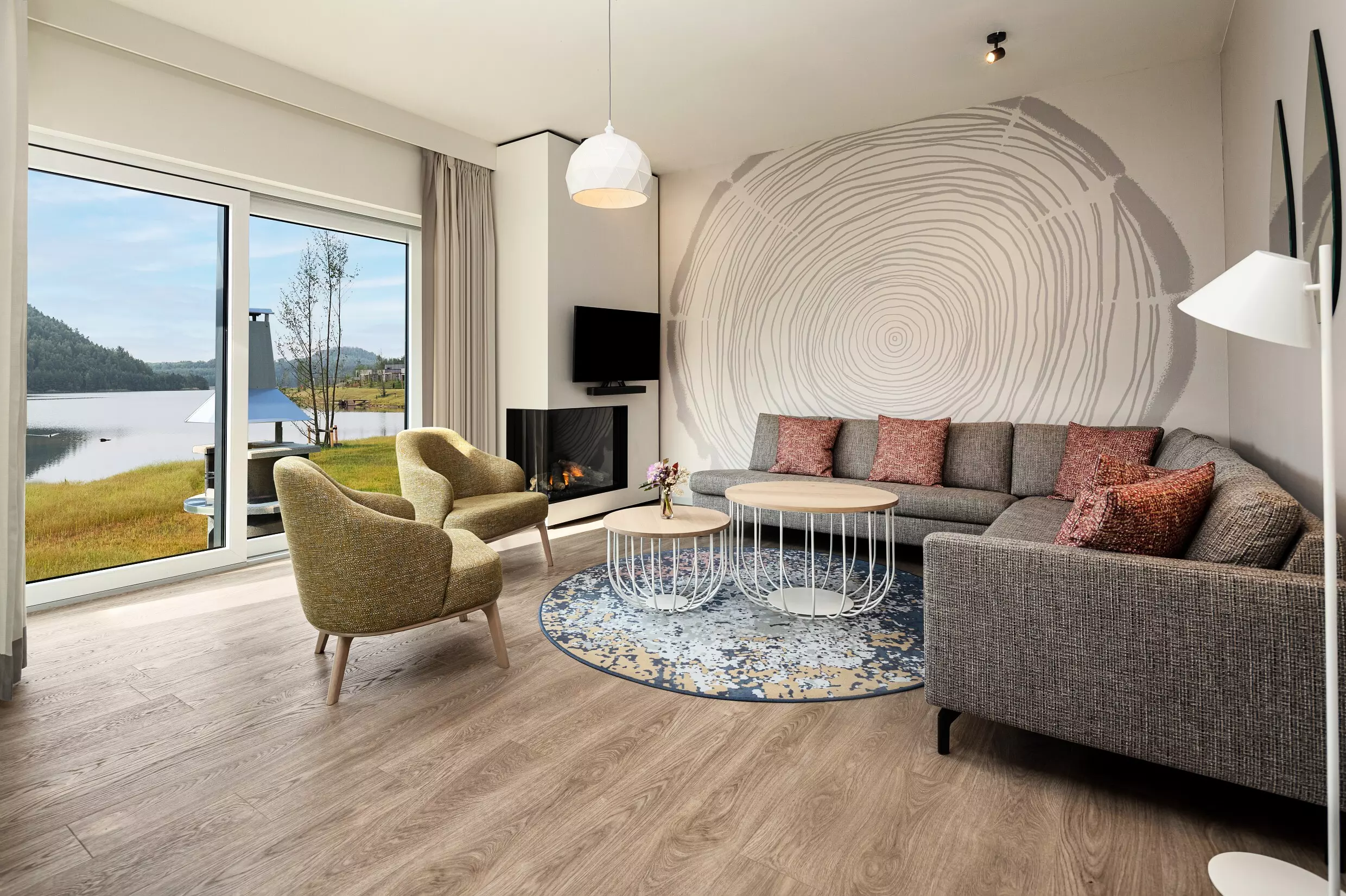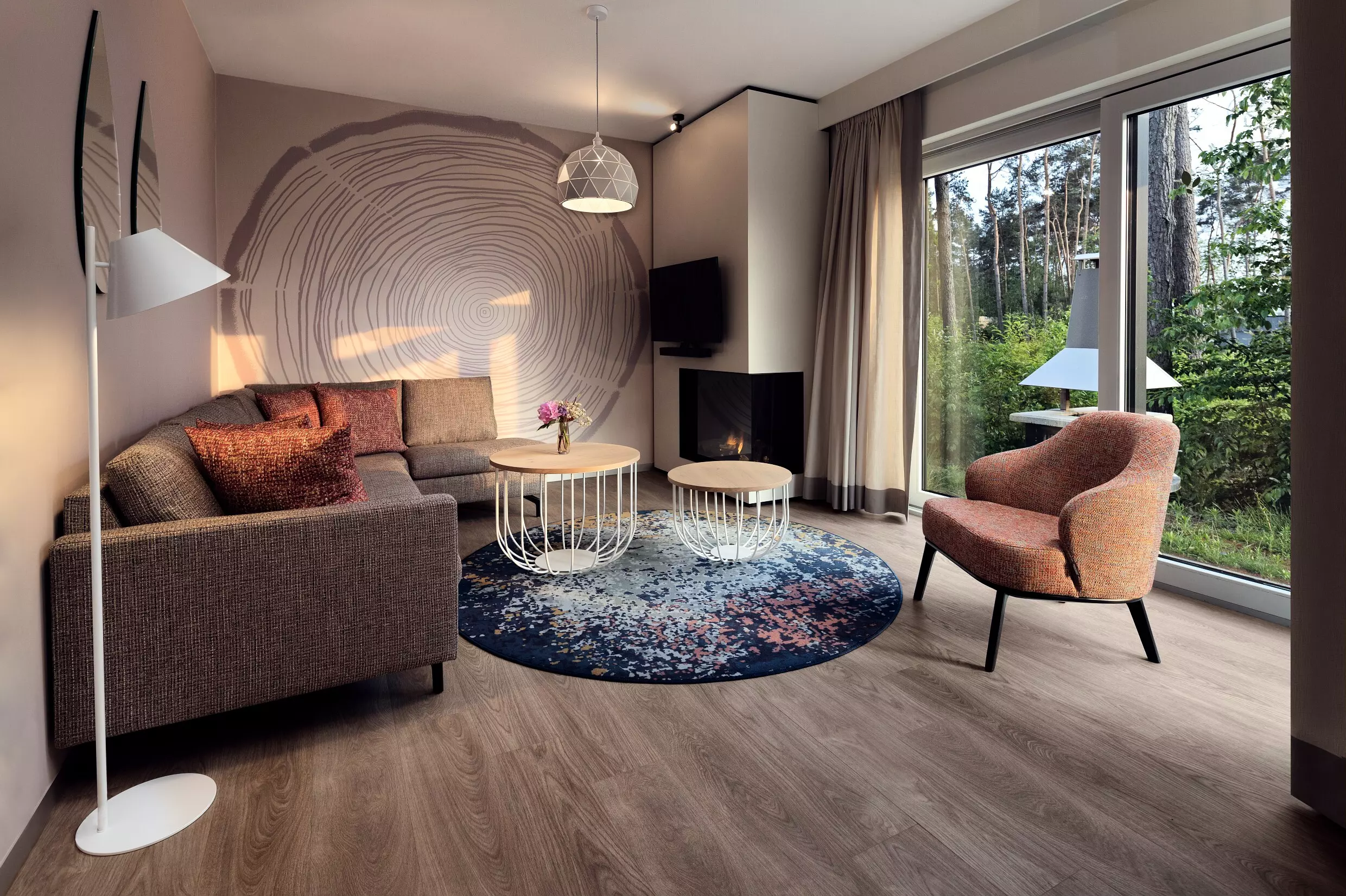 Le cottage est équipé d'une télévision, d'une cheminée électrique, d'un lave-vaisselle, d'une plaque de cuisson à induction 4 feux, d'un micro-ondes, d'un réfrigérateur avec congélateur, d'une bouilloire, d'une cafetière Nespresso Citiz, d'un grille-pain, d'un presse-agrumes, d'un wok, d'une douche extérieure, d'un sauna extérieur (cabine à infrarouge), d'un set lounge, d'un canapé rond, d'un parasol, d'un chauffage de terrasse et d'un barbecue.