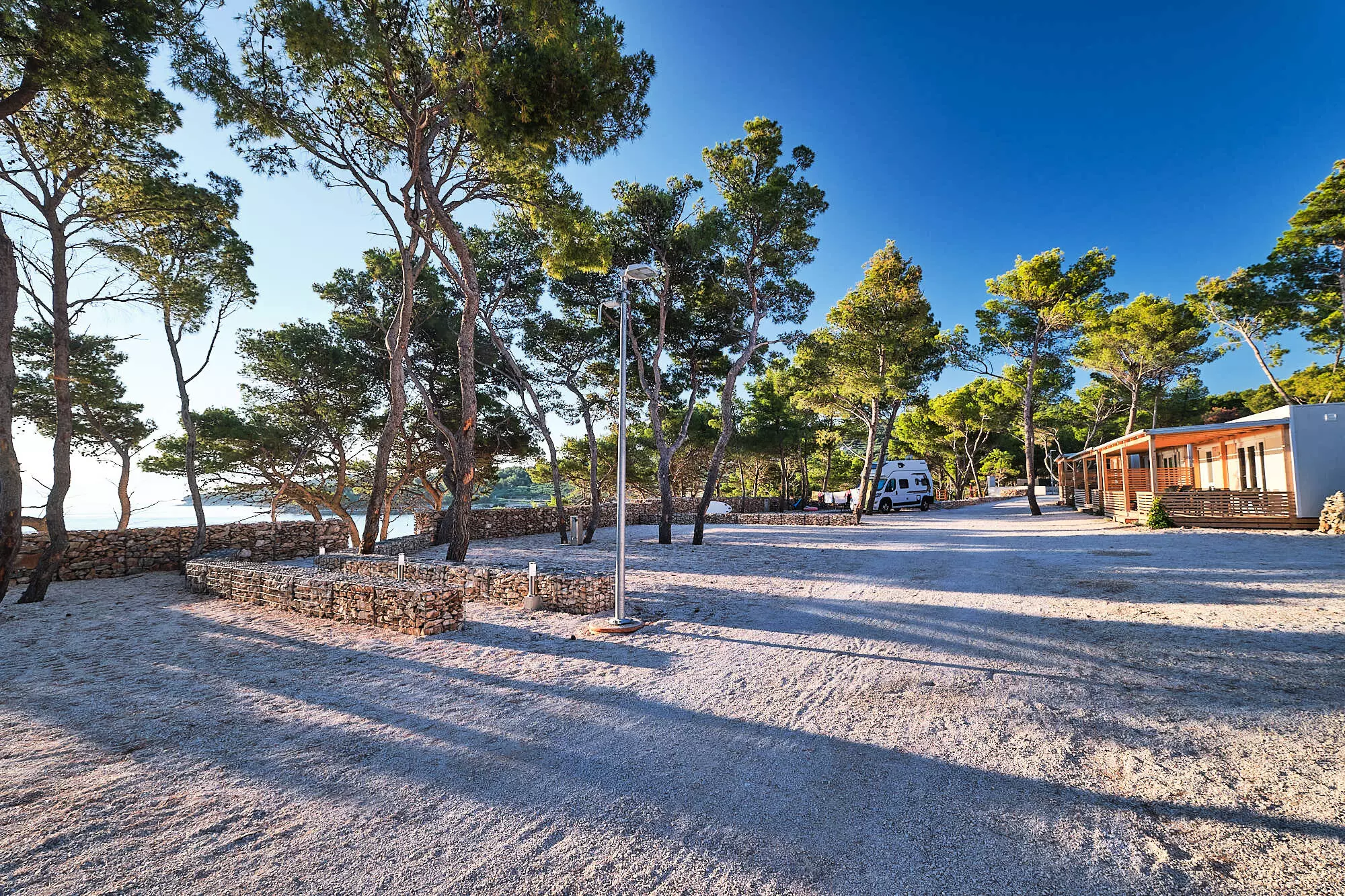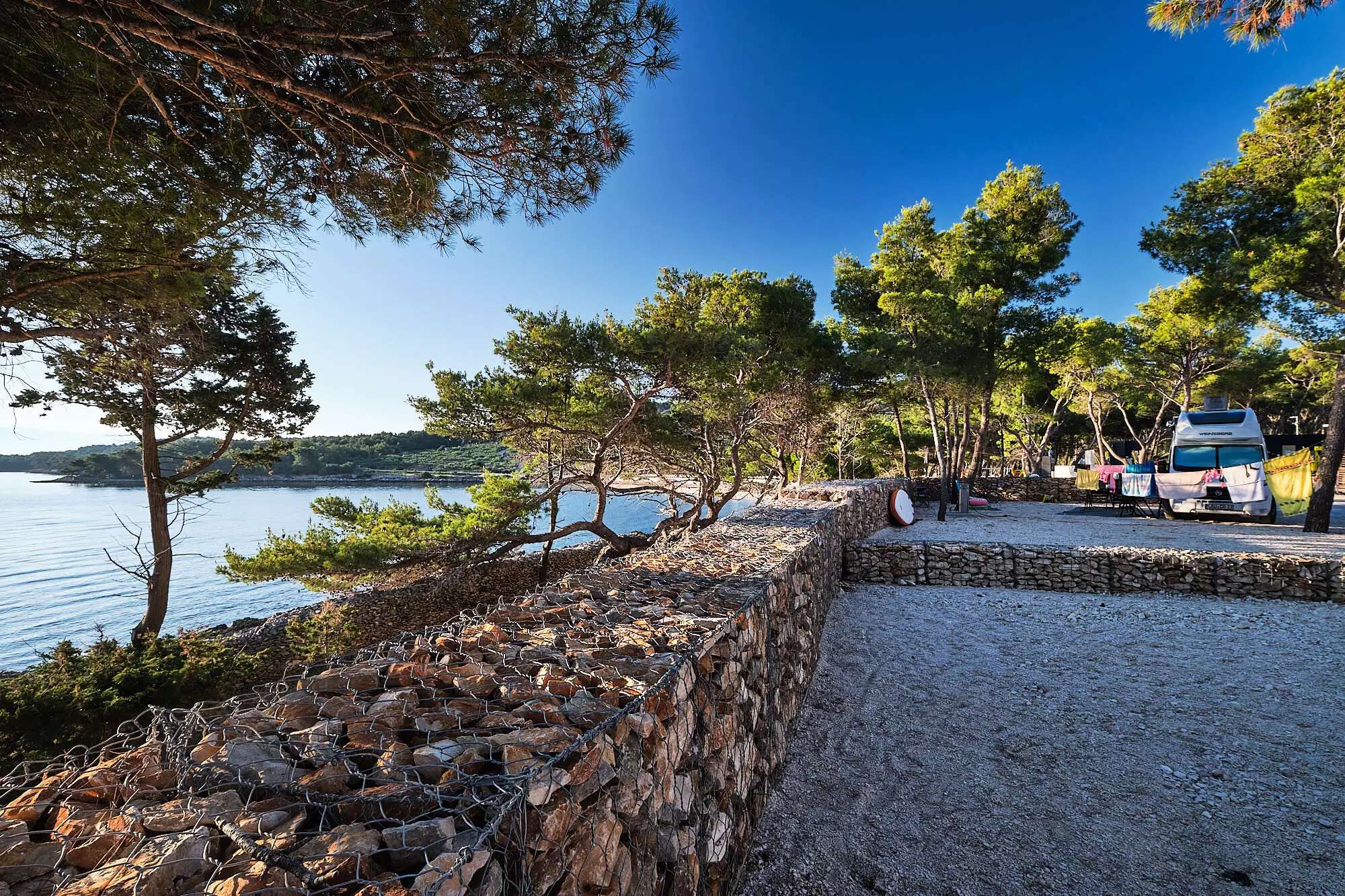 Harmonieusement intégré dans son environnement naturel, tout comme les traditionnels "bunja" et murets de pierres sèches caractéristiques de Brac, ce camping propose des emplacements spacieux et bien aménagés, à l'ombre bienfaisante des pins.