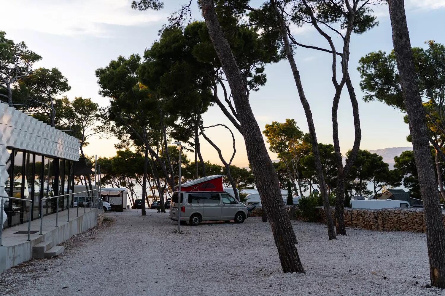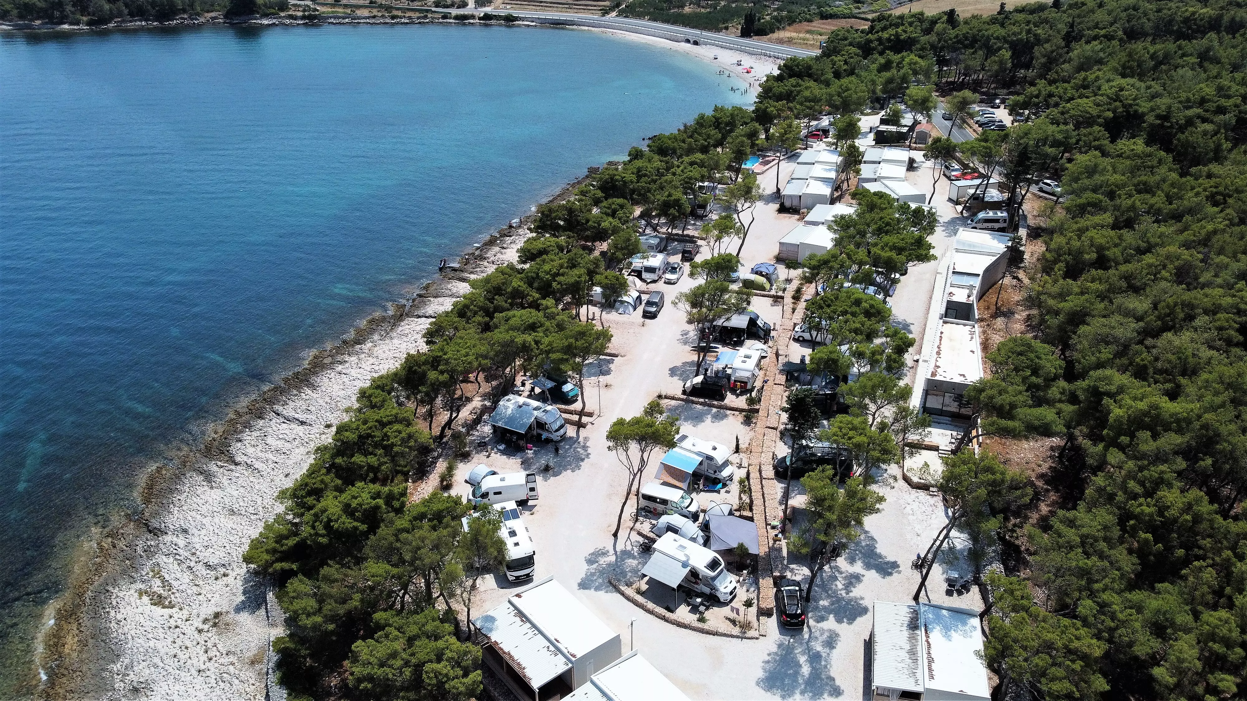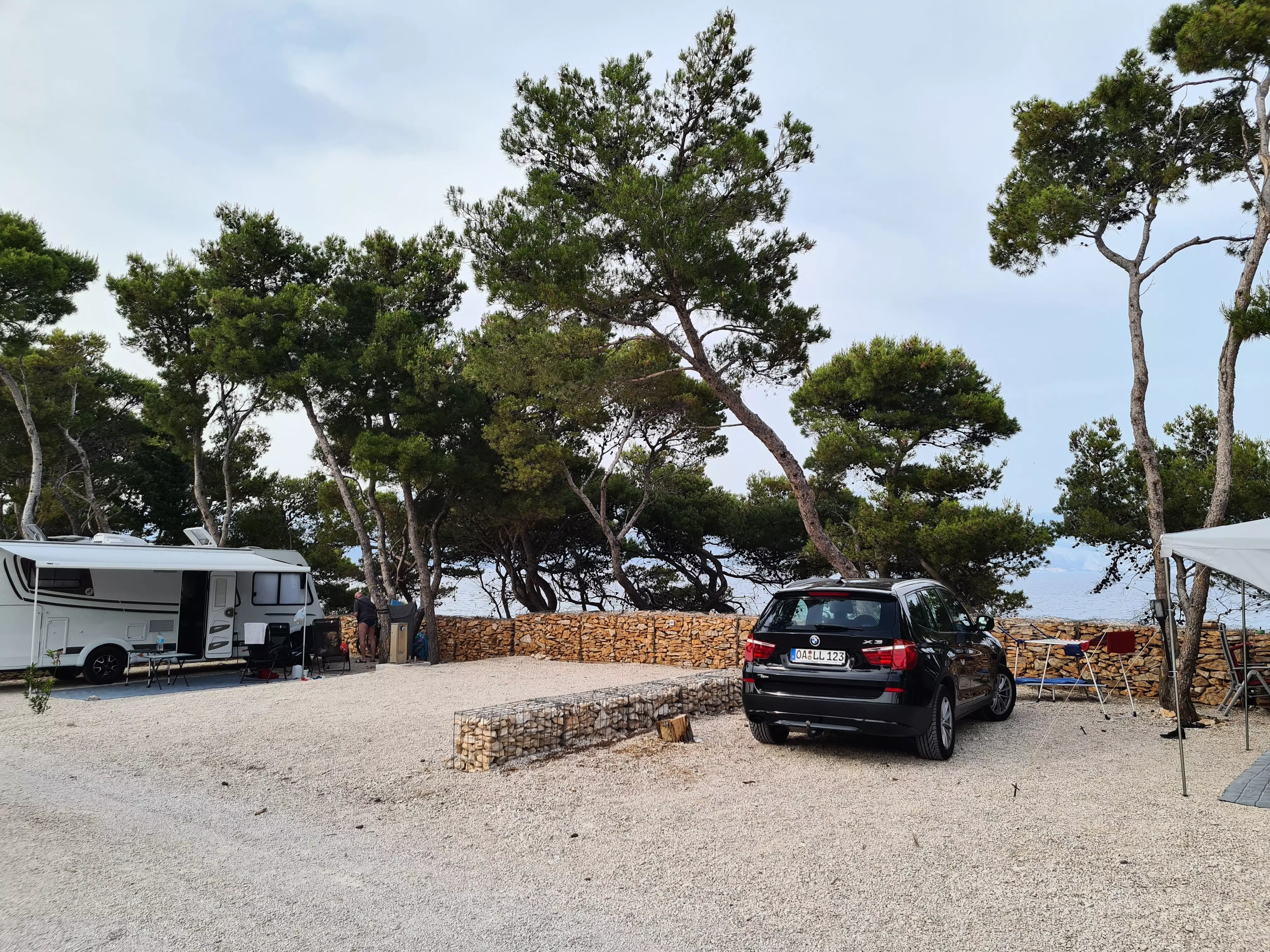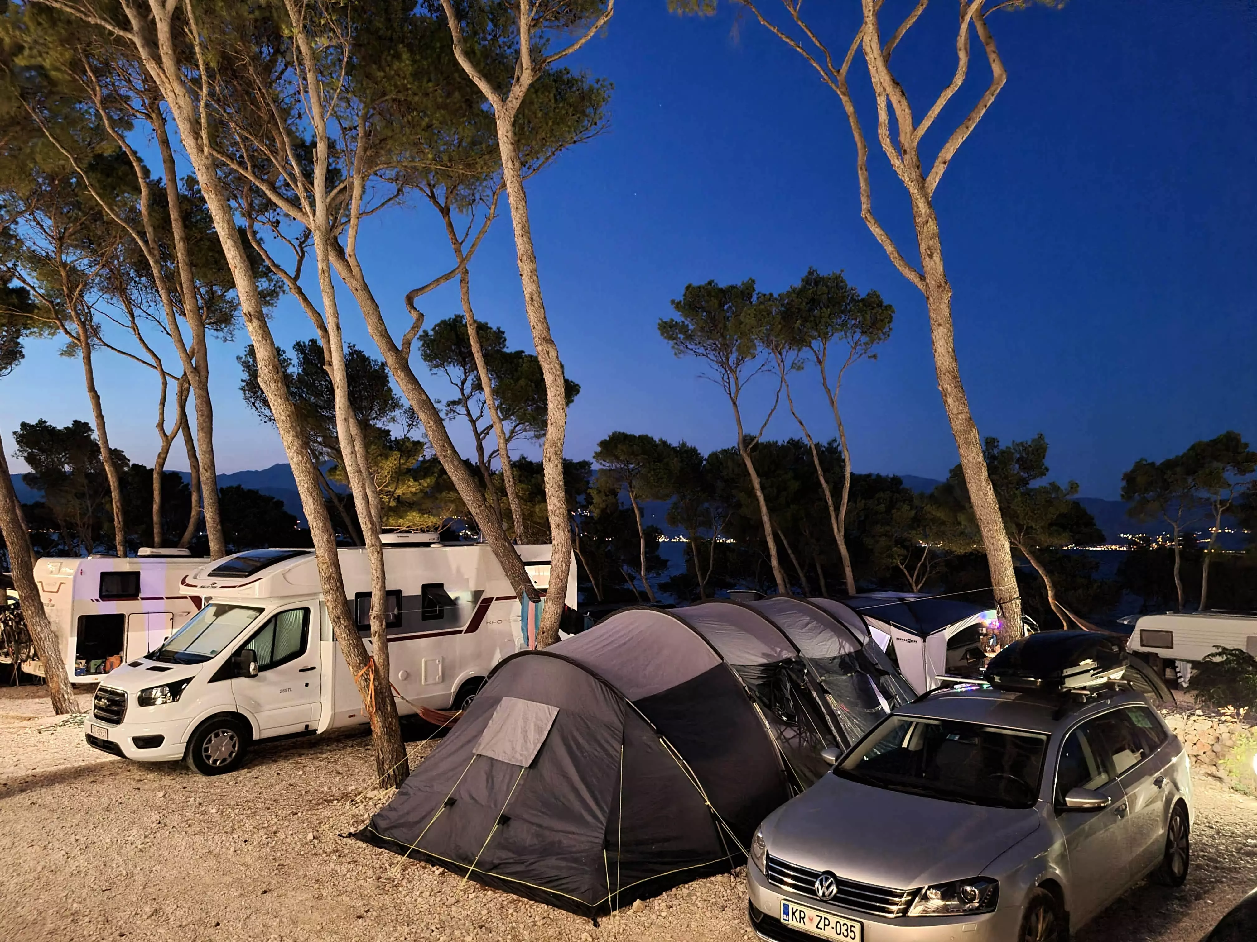 Nous prenons soin de l'environnement, c'est pourquoi tout le drainage est dirigé vers un épurateur biologique. Notre impact sur l'écosystème est minimal. Les emplacements sont parsemés de gravier fin. Les zones A et B sont entourées de verdure ou de murs de pierre traditionnels appelés " suhozid " qui font partie du patrimoine culturel de l'île de Bra?.