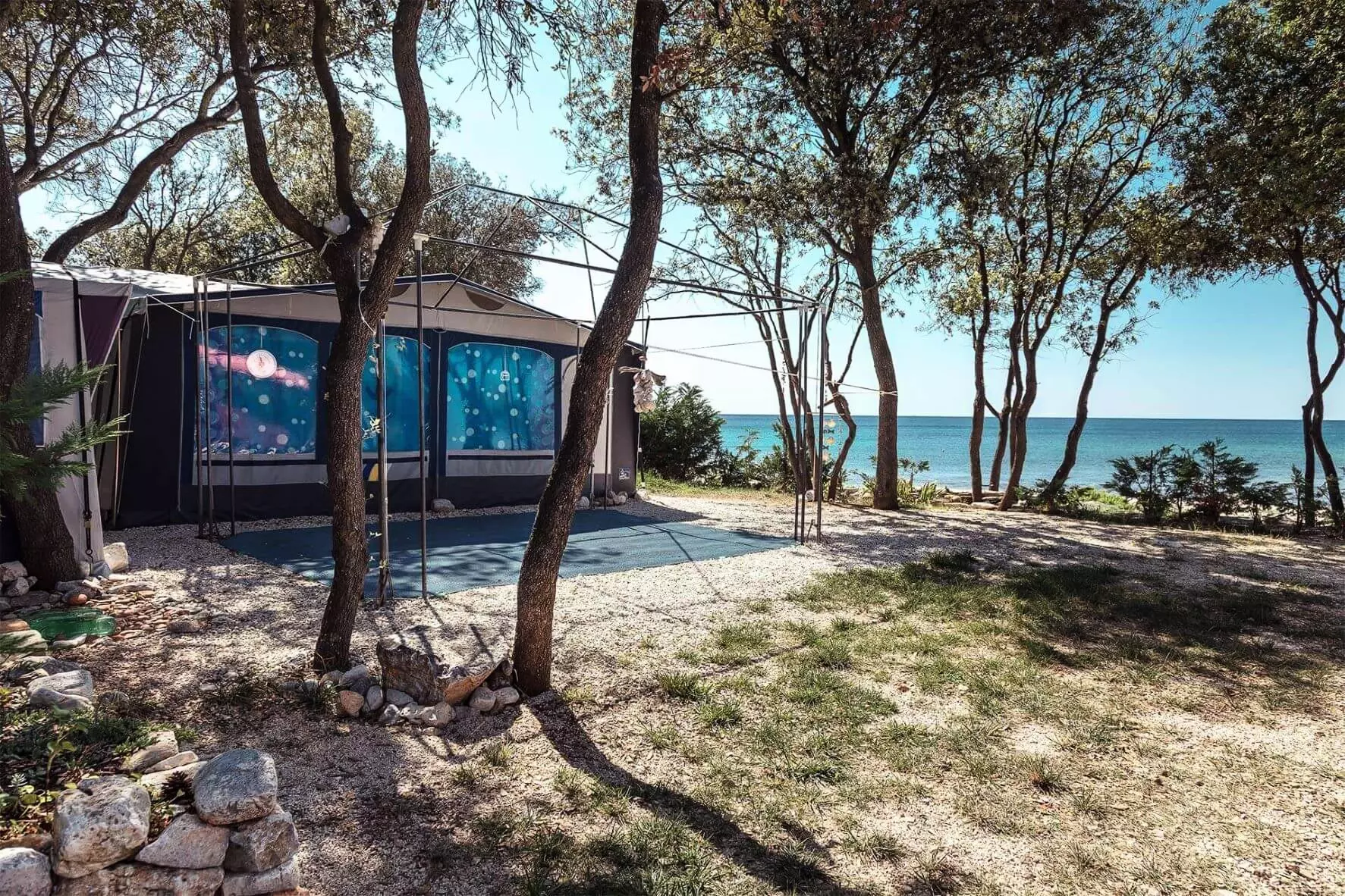 Choisissez un endroit attrayant immédiatement sur la côte et placez votre camping-car, votre caravane ou votre tente. Pour tous ceux qui aiment se détendre dans le pays intact, nous avons mis en place des maisons mobiles confortables sur le camping, qui vous feront vous sentir comme chez vous. Profitez de la nature, des senteurs d'herbes médicinales de la Méditerranée et profitez de magnifiques couleurs de couchers de soleil dorés ou rougeâtres, d'une mer cristalline et de cimes de chênes centenaires.