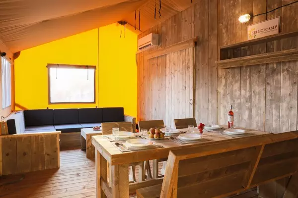 Tente Lodge Safari 4 pièces 6 personnes climatisé avec :