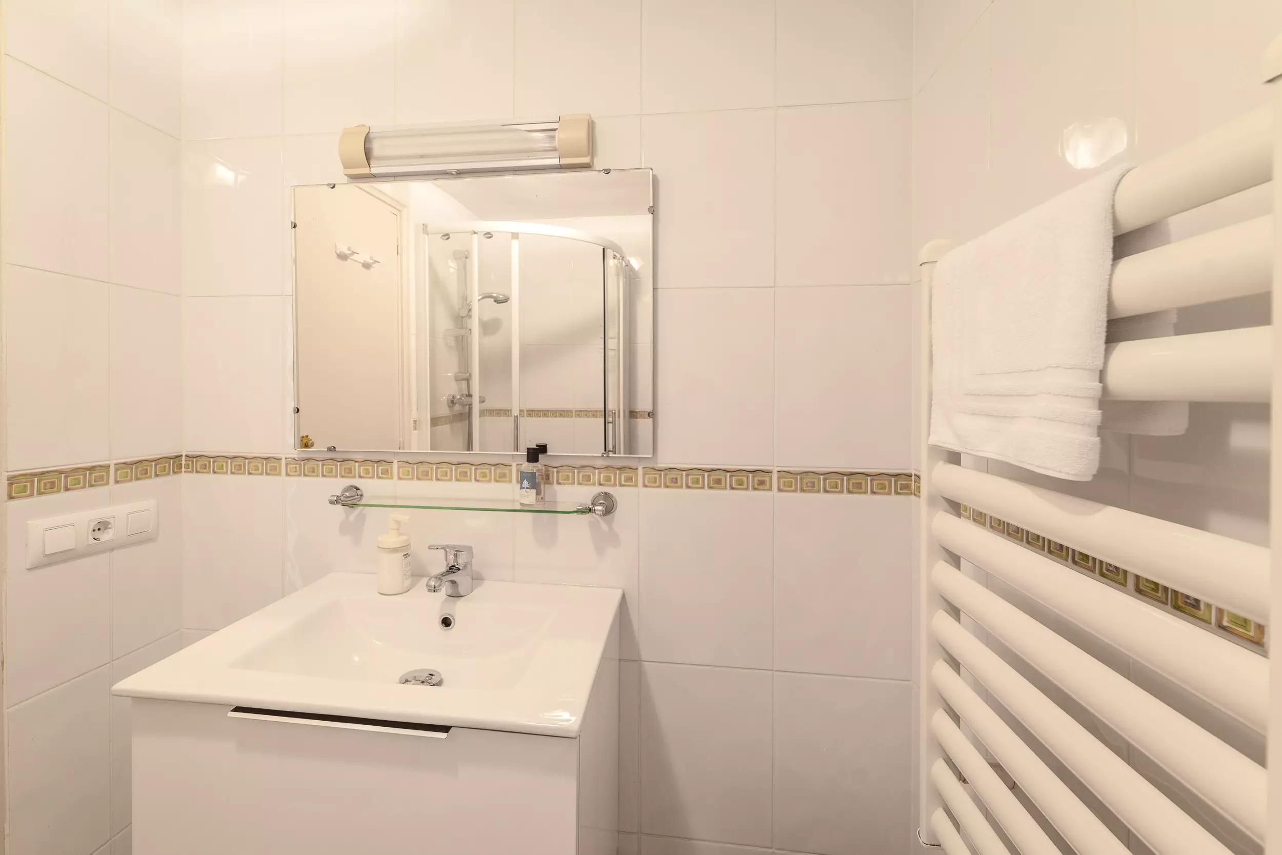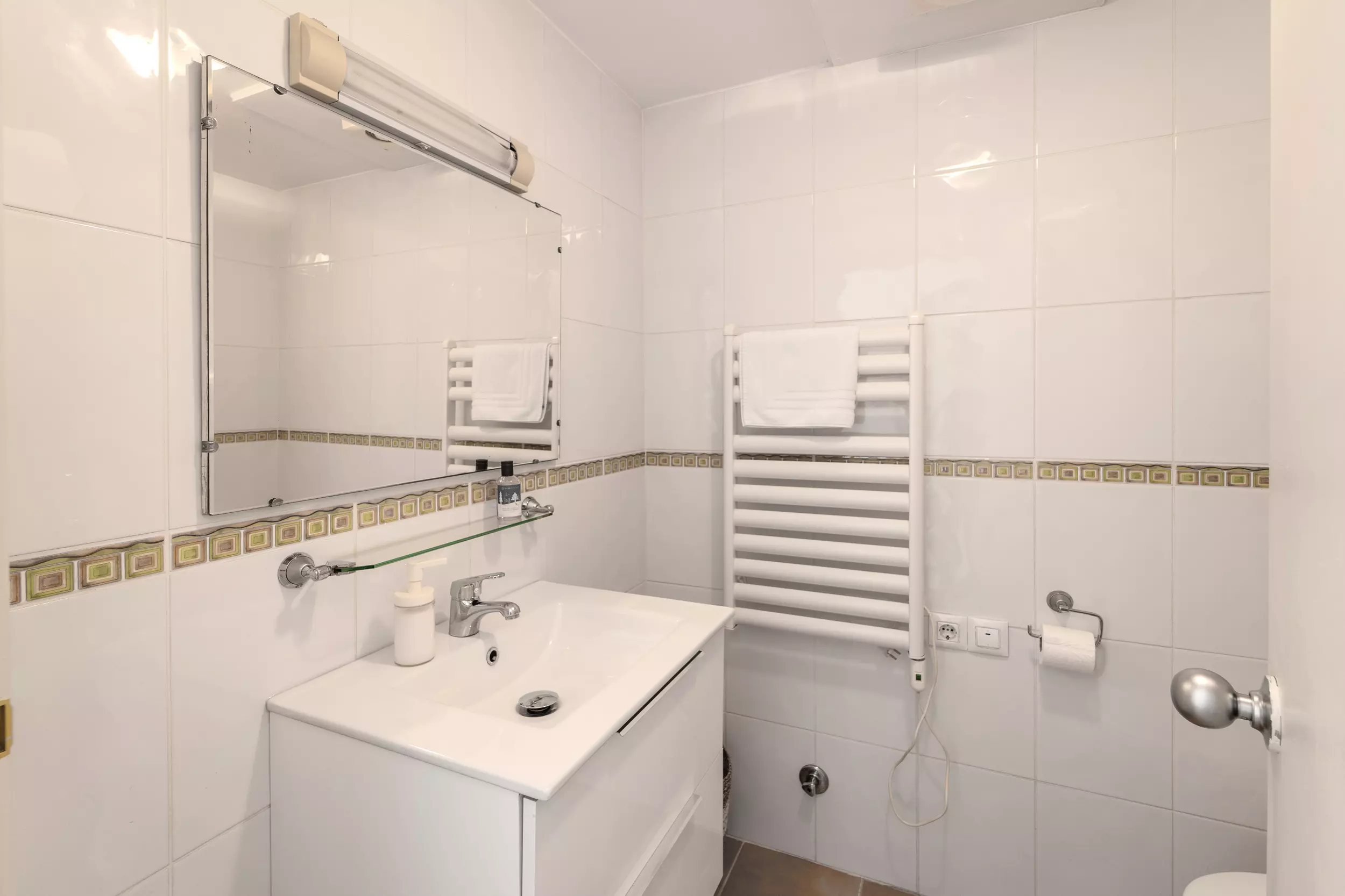 Profitez d'un grand et lumineux salon avec une zone de salle à manger, un canapé-lit confortable, une télévision intelligente et la climatisation. Depuis le salon, vous aurez accès à une terrasse parfaite pour vous détendre avec un café tout en profitant de l'air frais.