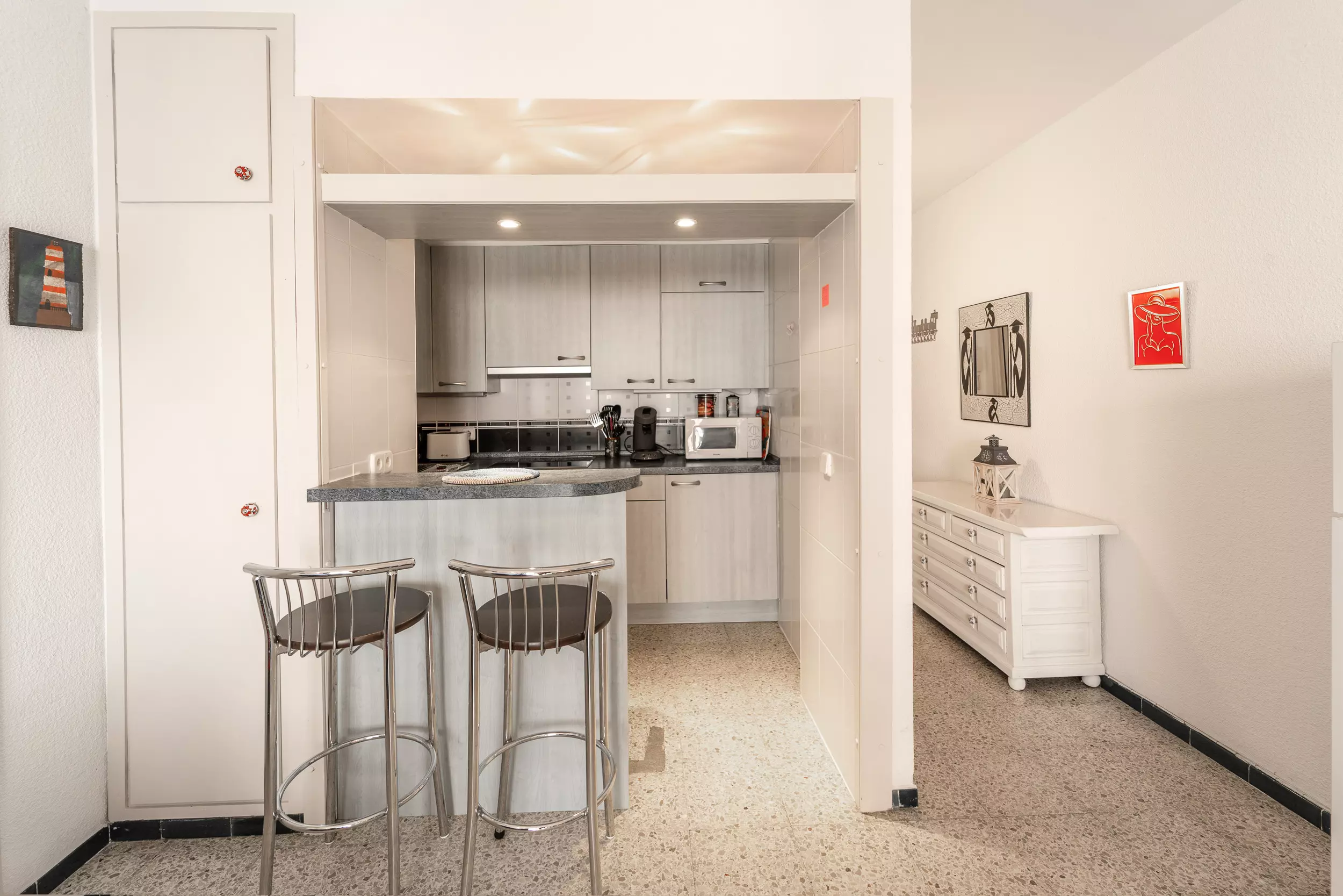 Bienvenue dans la merveilleuse Empuriabrava, où nous proposons un appartement en location sur la Costa Brava, situé à quelques minutes de la plage et des célèbres canaux. Cet appartement moderne de 50 m² peut accueillir 4 personnes et dispose d'une cuisine entièrement équipée, comprenant réfrigérateur, bouilloire, plaques de cuisson, four, grille-pain, cafetière et micro-ondes, idéal pour préparer vos plats préférés.
