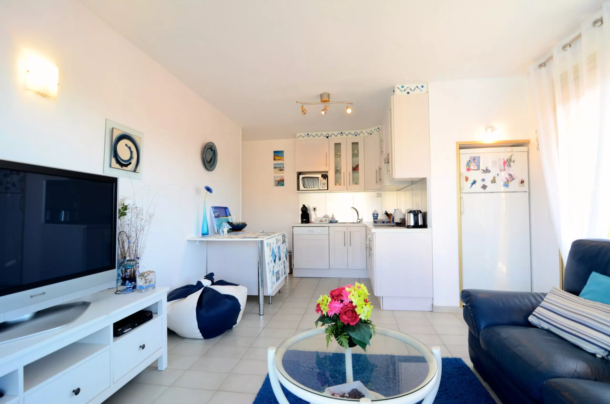 L'appartement dispose d'une grande terrasse où vous pourrez profiter du climat méditerranéen. Pour votre confort, il est équipé d'un fer à repasser et dispose d'une piscine commune, parfaite pour vous rafraîchir, ainsi que d'une pataugeoire pour enfants. En termes de divertissement, vous trouverez une télévision pour profiter de vos émissions préférées. Les draps sont inclus et si vous avez besoin de serviettes, elles sont disponibles pour 5 euros par personne.