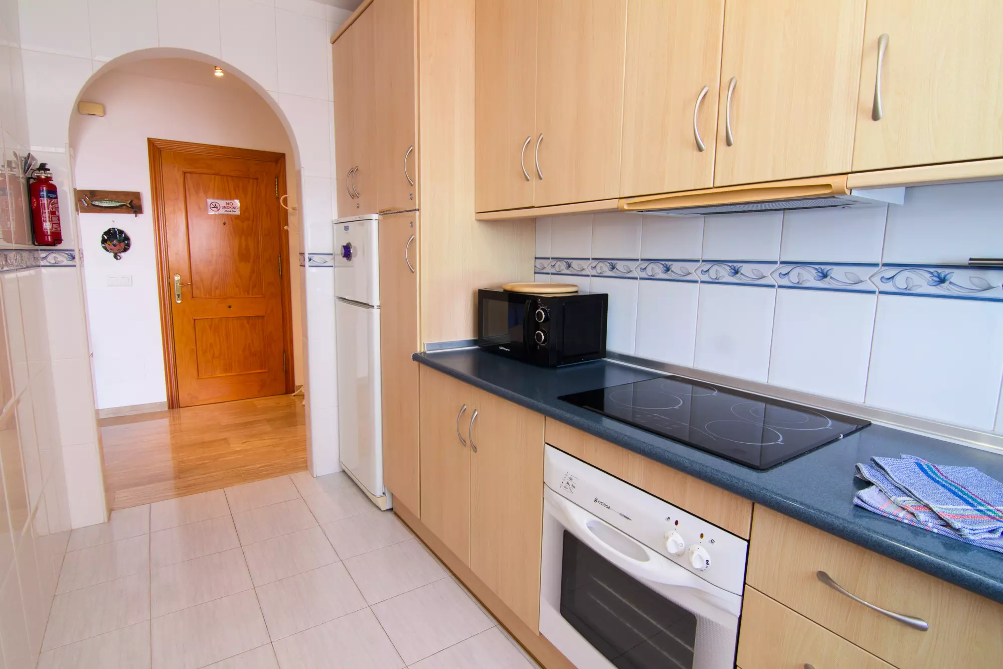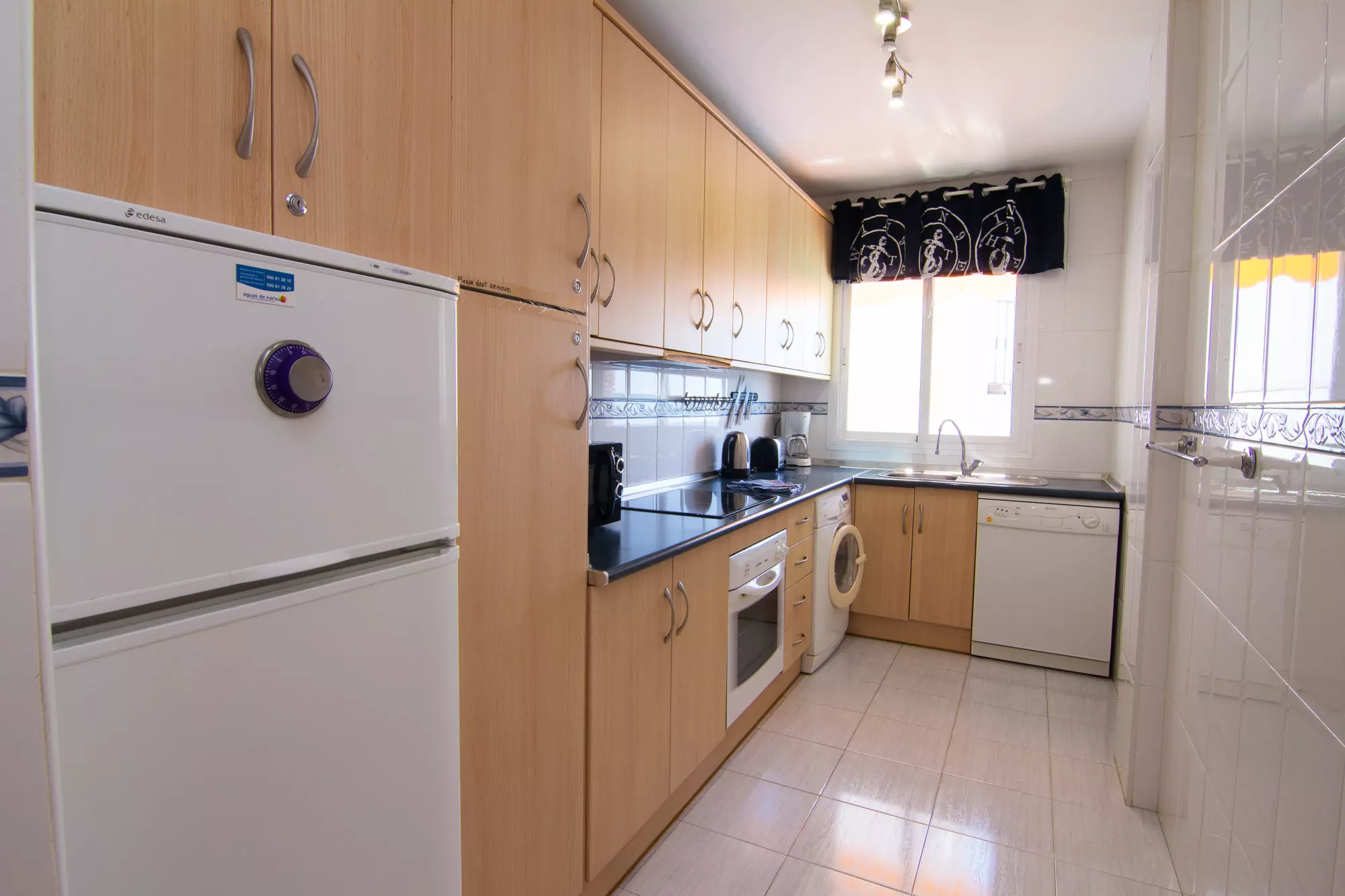 La cuisine, est équipée avec réfrigérateur, micro-ondes, four, congelateur, lave-linge, lave-vaisselle, vaisselle/couvert, ustensiles/cuisine, cafetière, grille pain, bouilloire et presse-agrumes.