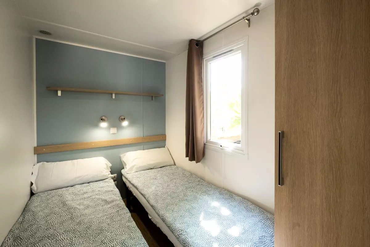 À noter : Ce logement peut accueillir 4 adultes et 1 enfant -12 ans. Les tailles de lits mentionnées sont non contractuelles. Il est possible d'avoir de légères différences de tailles selon les modèles de locatifs. La disposition des lits et la décoration peuvent également varier.