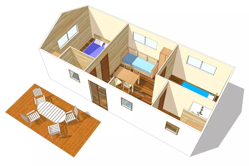 Mobil home Classic 3 pièces 4 personnes climatisé avec :