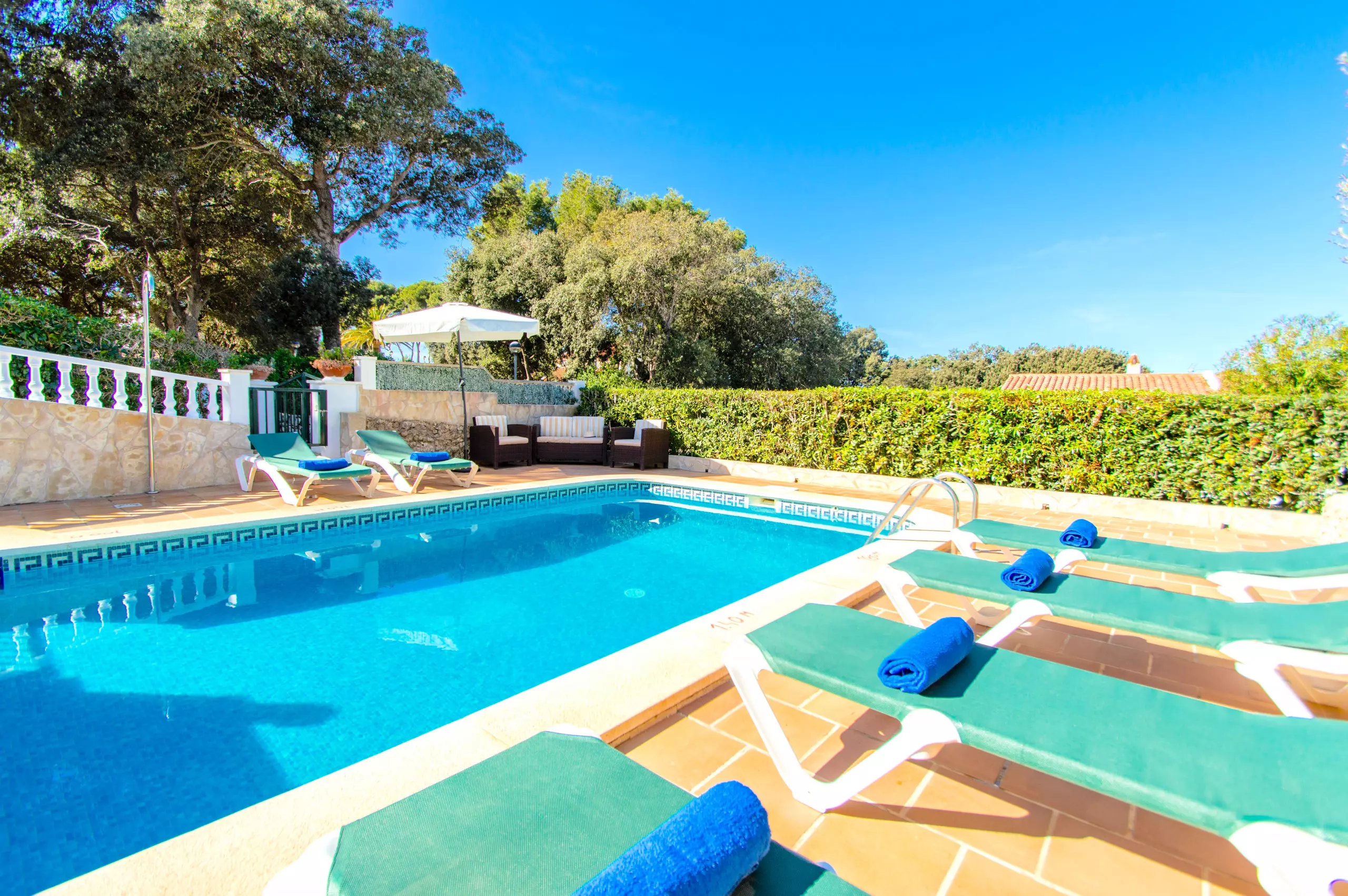 The Villa to rent stands out for its sunny outdoor area with a large private pool, terrace, and barbecue ideal to enjoy a magnificent vacation with family, as a couple or with friends. It is located in an enviable, quiet environment of great natural value just a 5 minute walk from Cala Galdana Beach, a 15 minute walk from Cala Mitjana and very close to Camí de Cavalls.