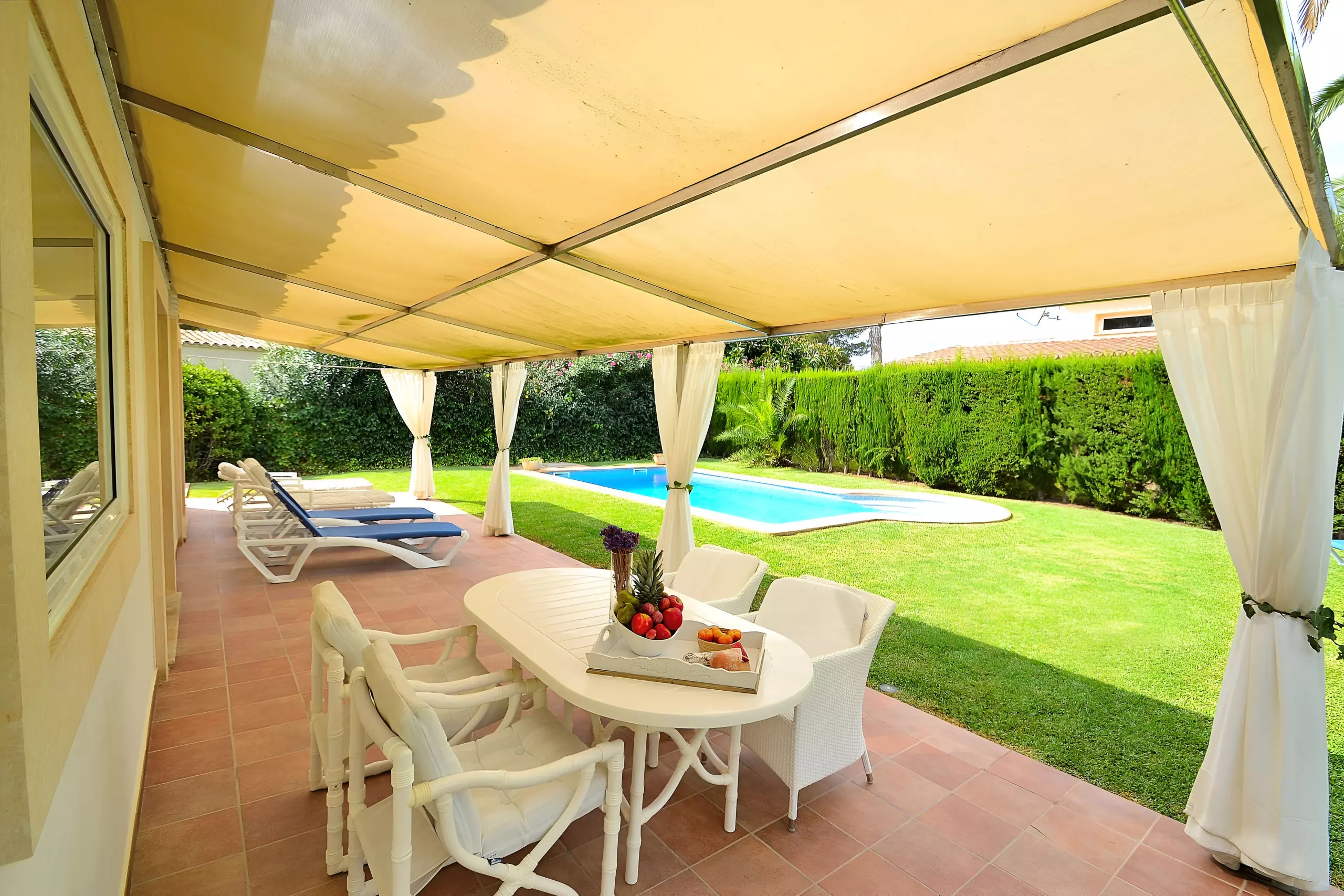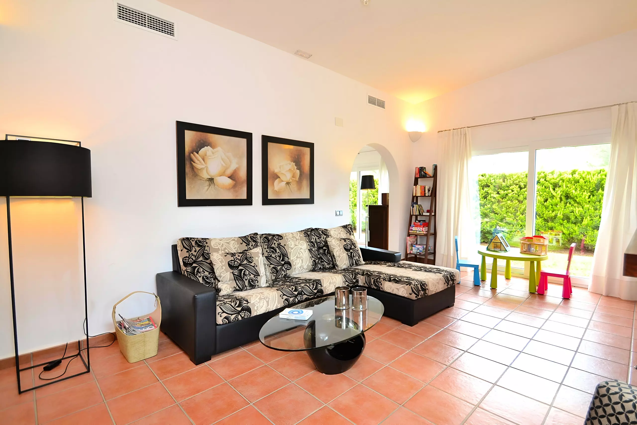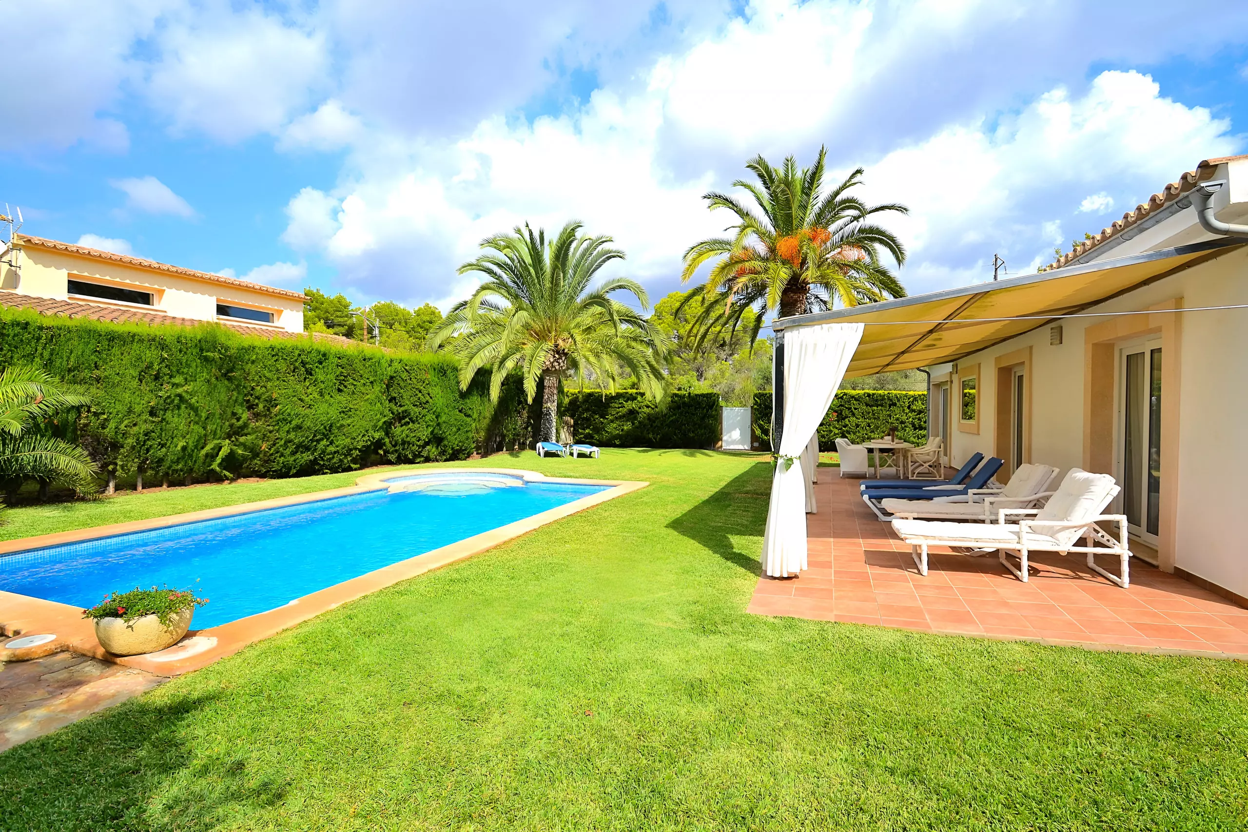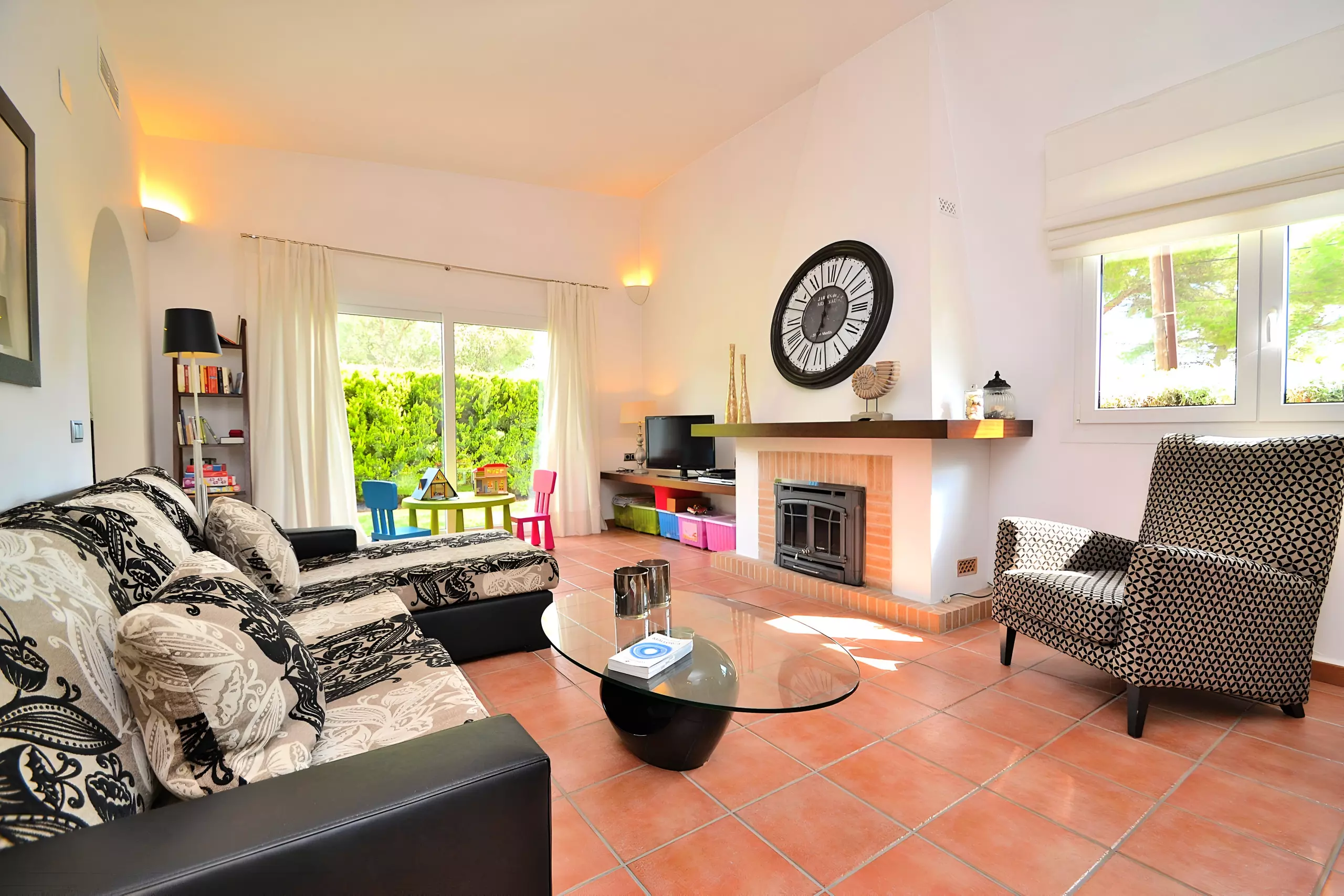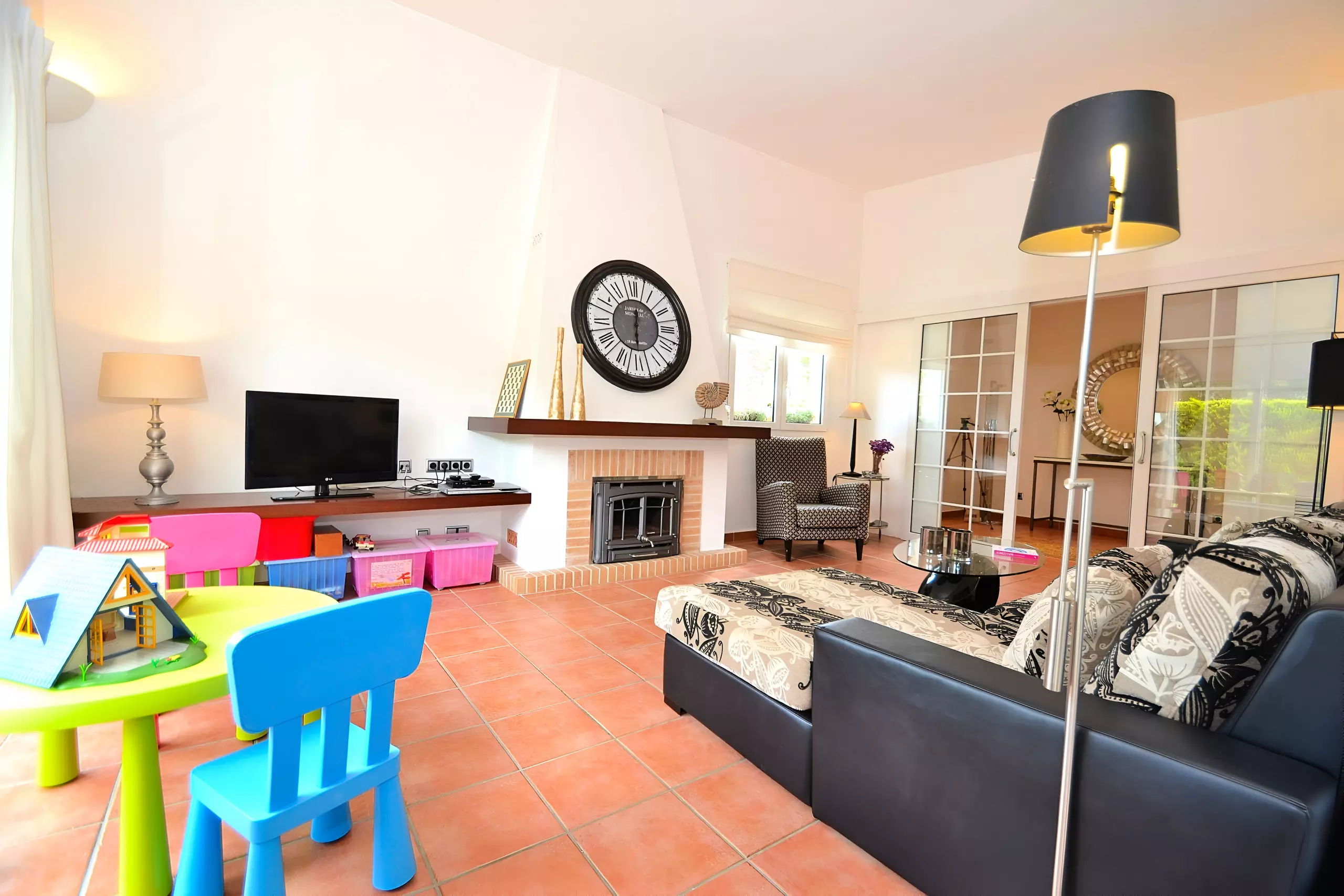 Le jardin bien entretenu de 800 m² avec pelouse est idéal pour les enfants. En outre, chacune des deux fincas dispose d'une poussette pour les tout-petits et de 4 bicyclettes (dont une avec siège enfant) au total.
