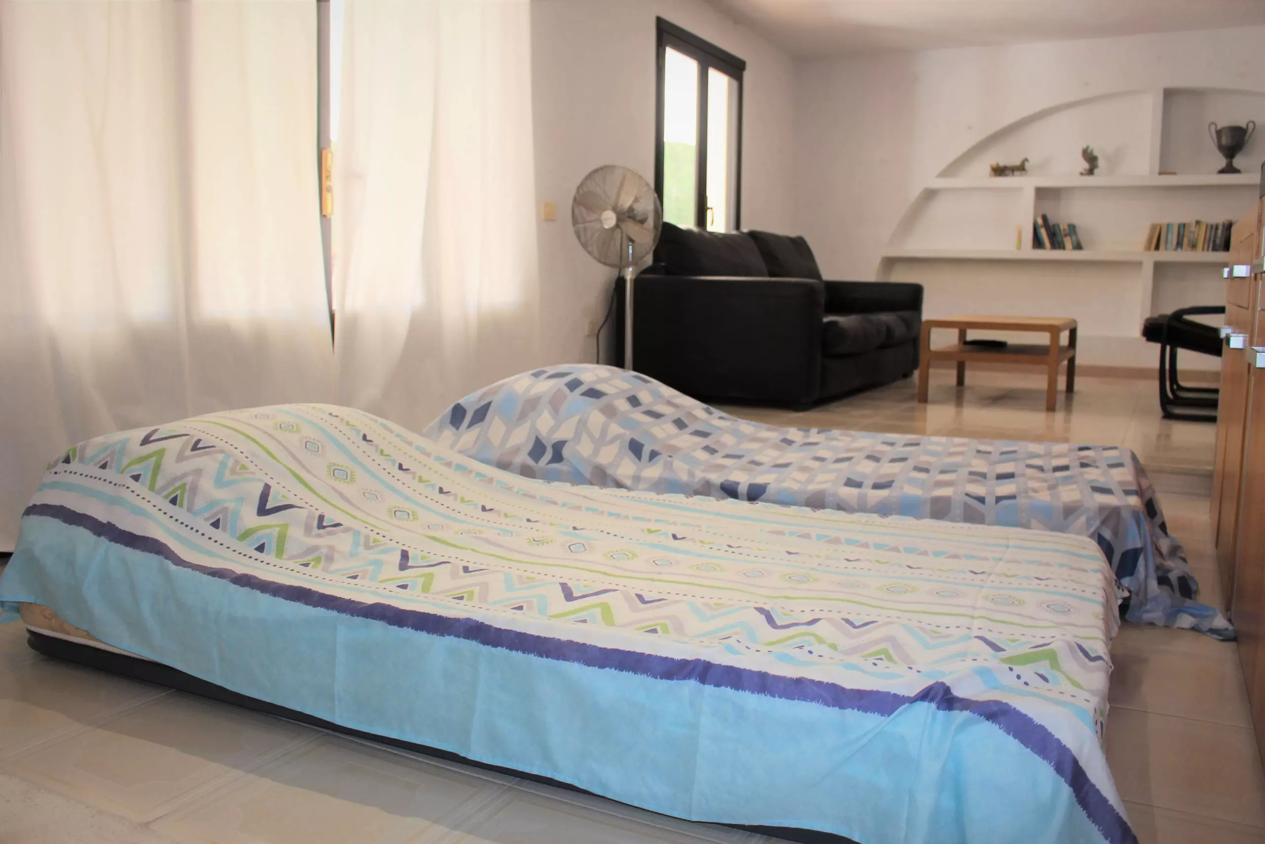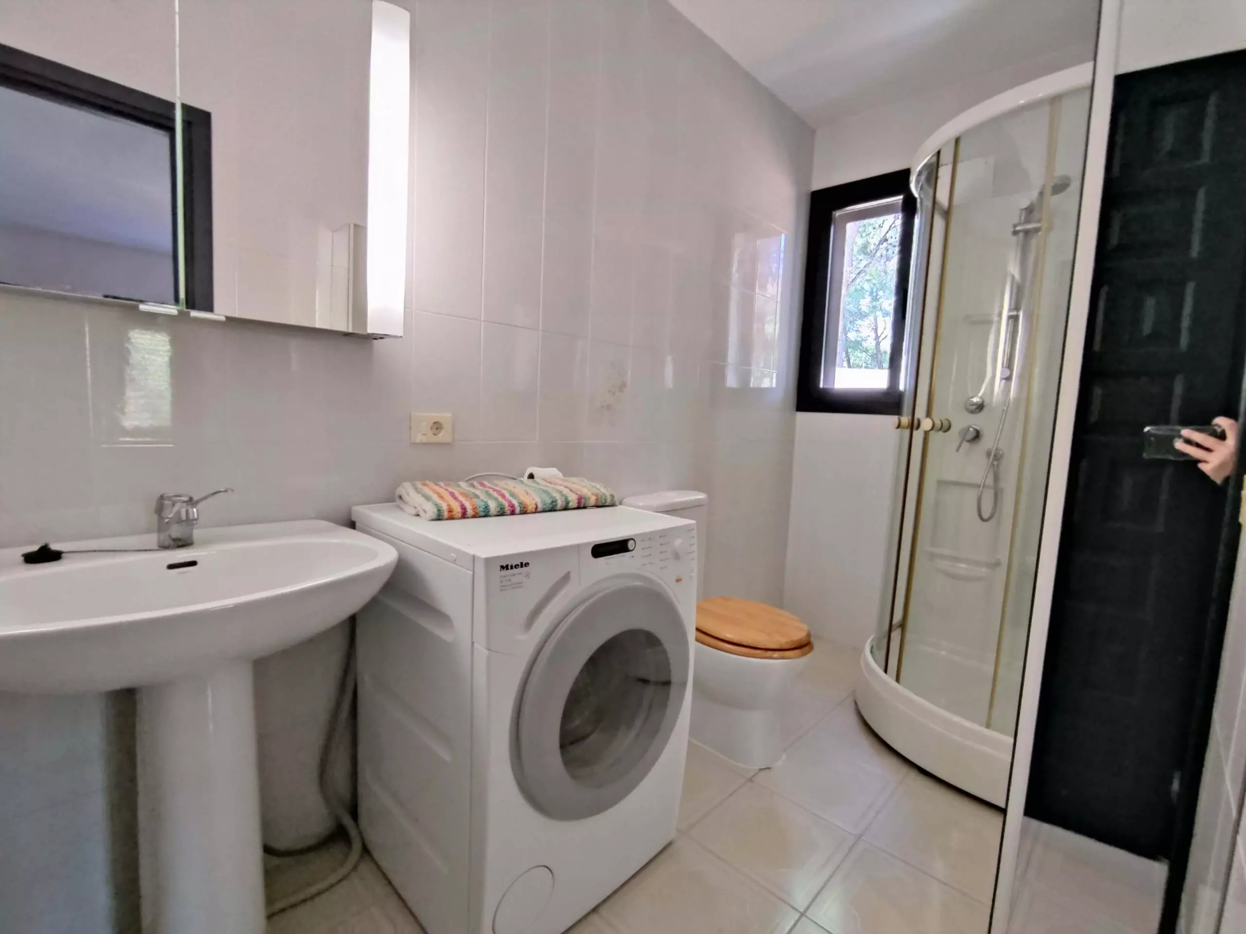 La maison a 2 étages, mais seul le rez-de-chaussée est à louer. Dans celle-ci, nous trouvons 1 chambre à coucher avec un lit double et une salle de bain propre (avec douche et machine à laver).