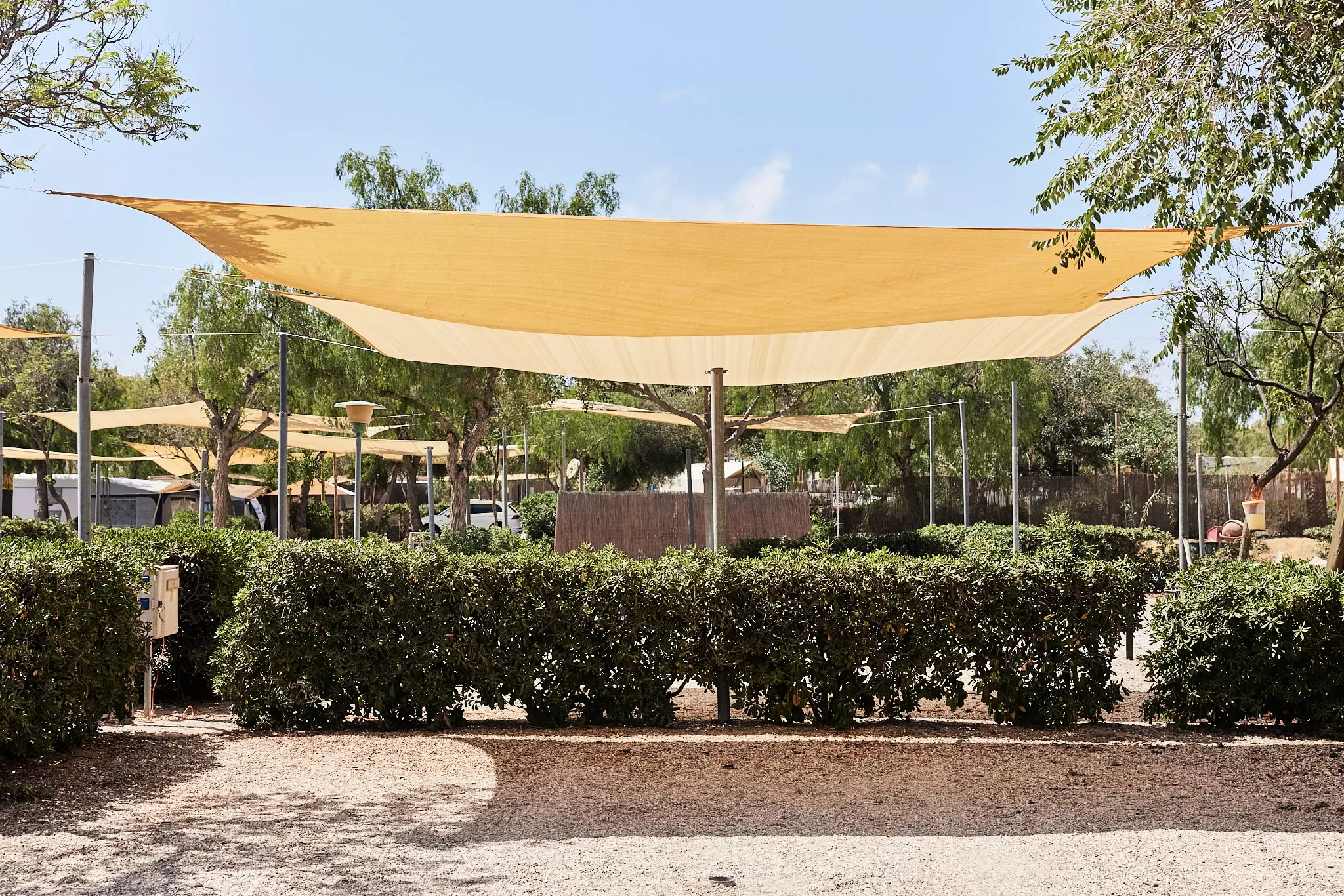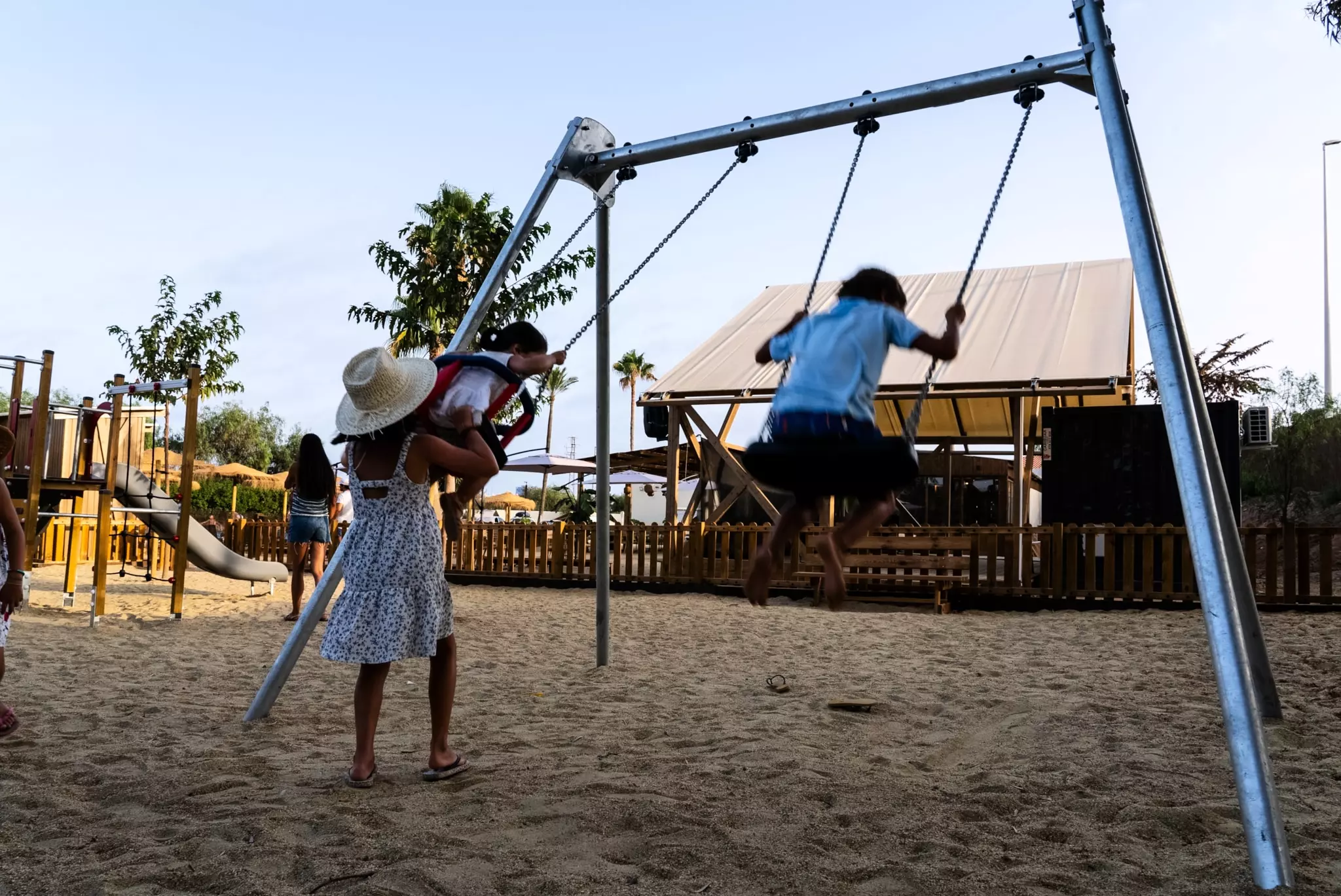 Our exclusive glamping tents. With two separate rooms, one with a double bed and the other with two beds. Terrace and full kitchen.