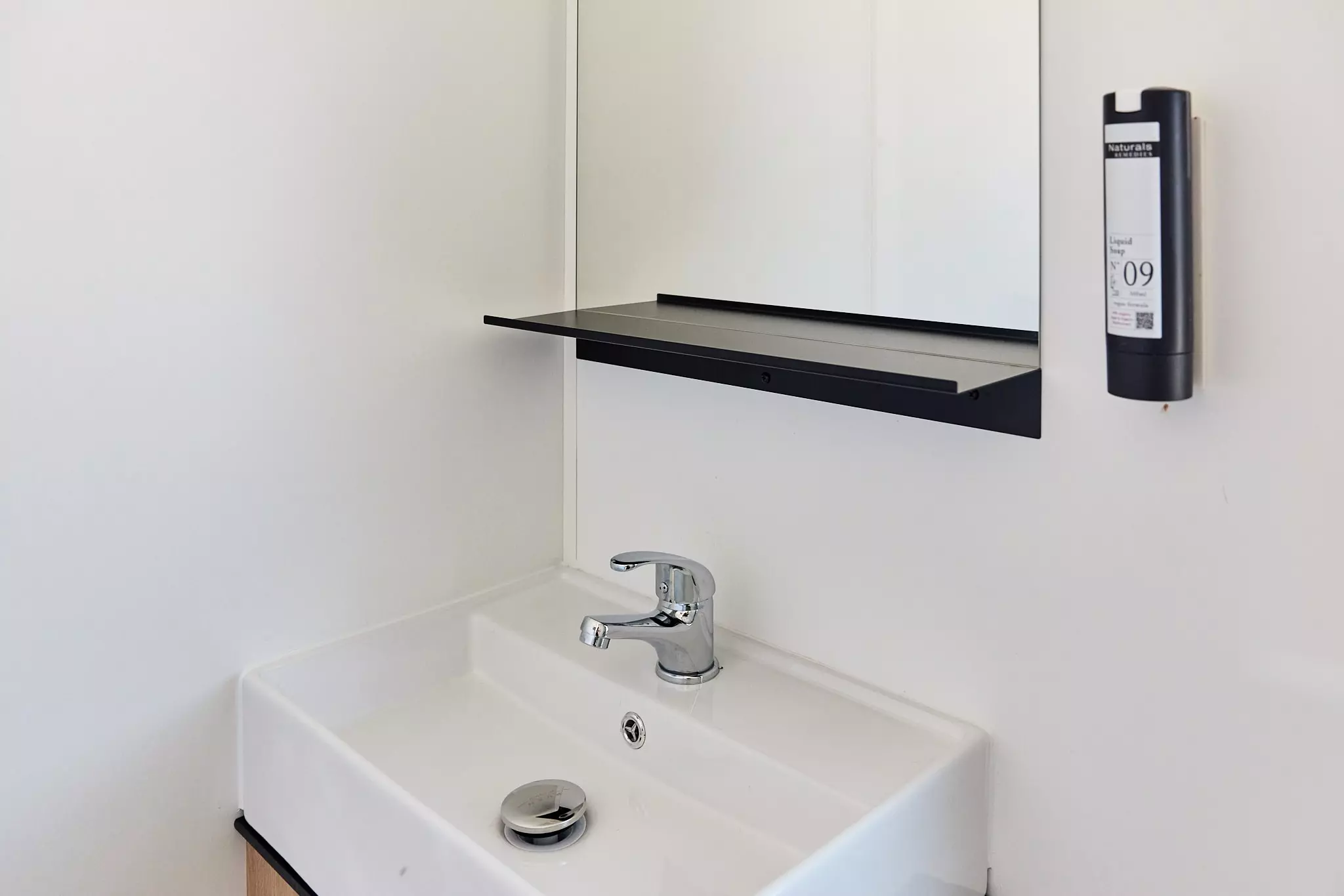 Our exclusive glamping tents. With two double beds in bunk format, terrace and minibar.