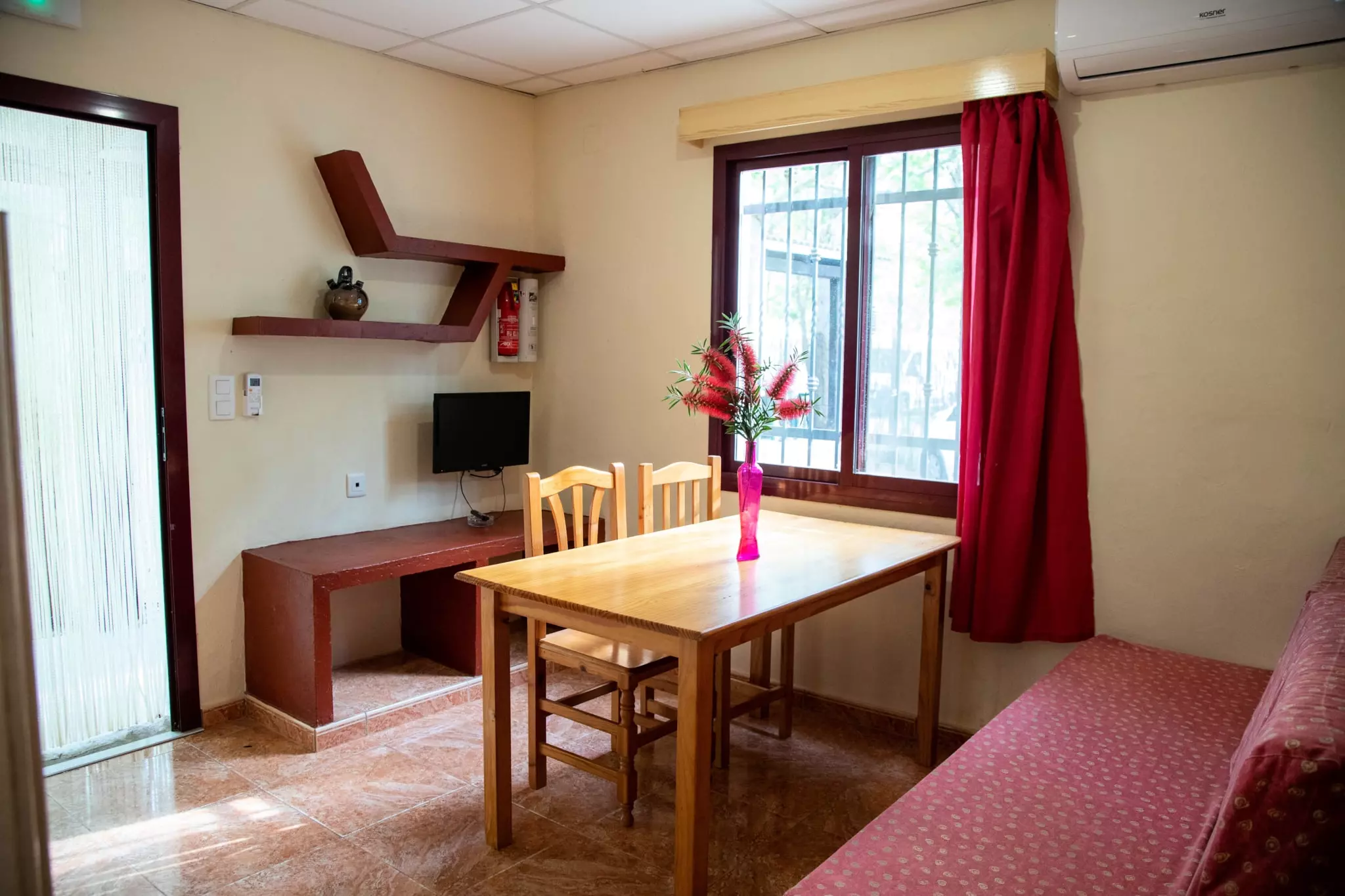 Disfruta de la tranquilidad e independencia en nuestro bungalow recientemente reformado. Con capacidad para 4 personas, es ideal para familias o grupos de amigos. Este acogedor alojamiento cuenta con dos habitaciones, una con cama de matrimonio y otra con dos camas individuales. Además, ofrece un cómodo comedor con sofá, cocina completamente equipada y un baño privado con ducha. Relájate en la amplia terraza privada amueblada, perfecta para disfrutar del aire libre