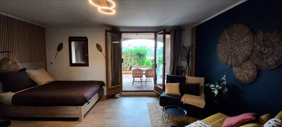 Studio cocoon au calme en rez-de-jardin avec terrasse exposée plein sud, pour 2 personnes.