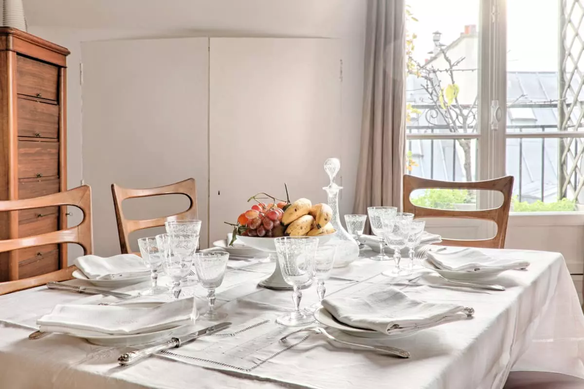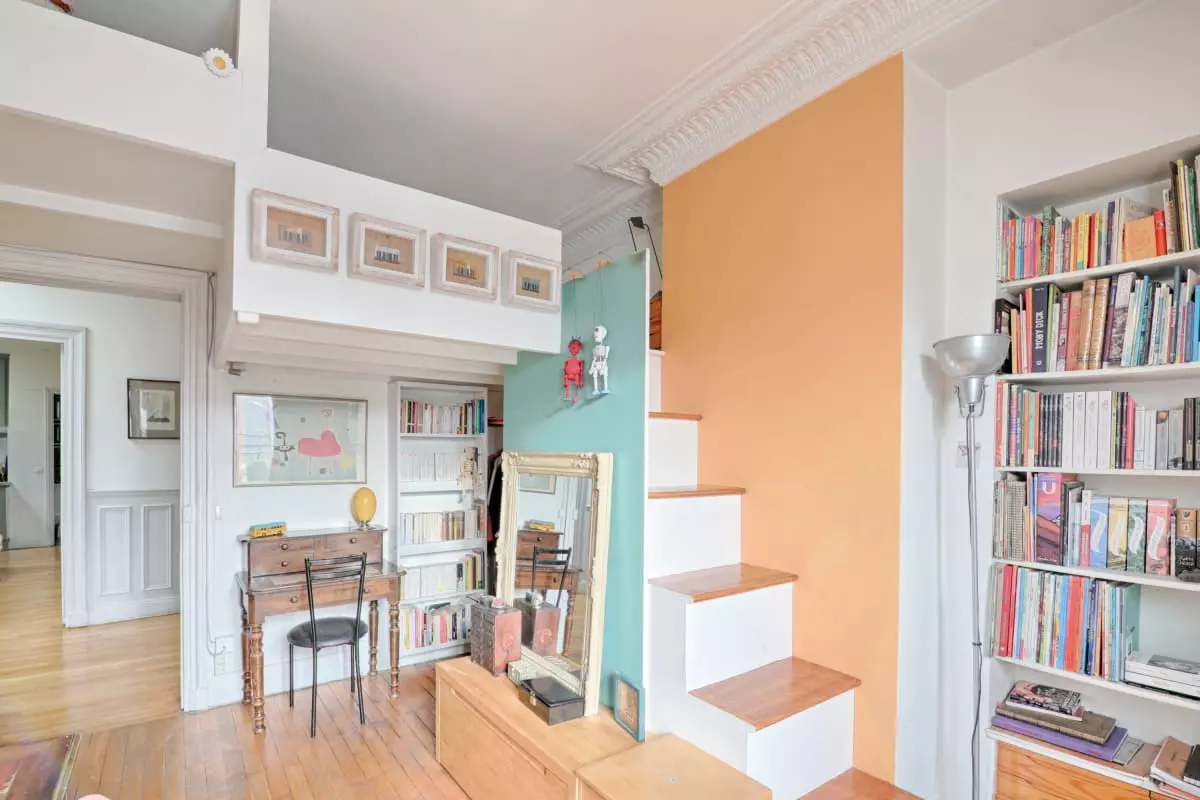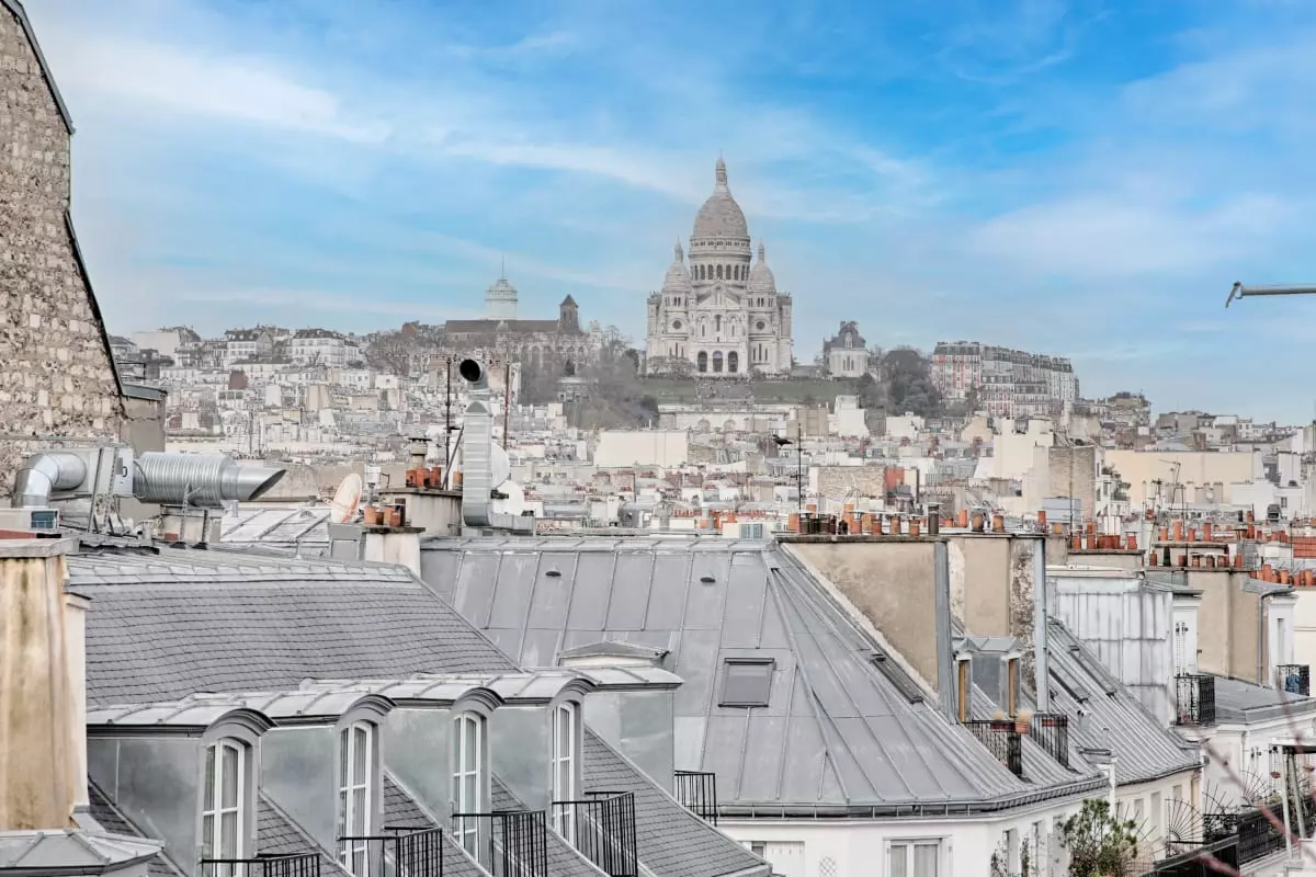 Niché au 5è étage avec ascenseur, cet appartement offre un charme unique, alliant l'ancien au confort moderne. Profitez d'une vue pittoresque sur la rue, contemplant le Sacré-Cœur, les toits de Paris, le sommet de la Tour Eiffel et le toit de l'Opéra.