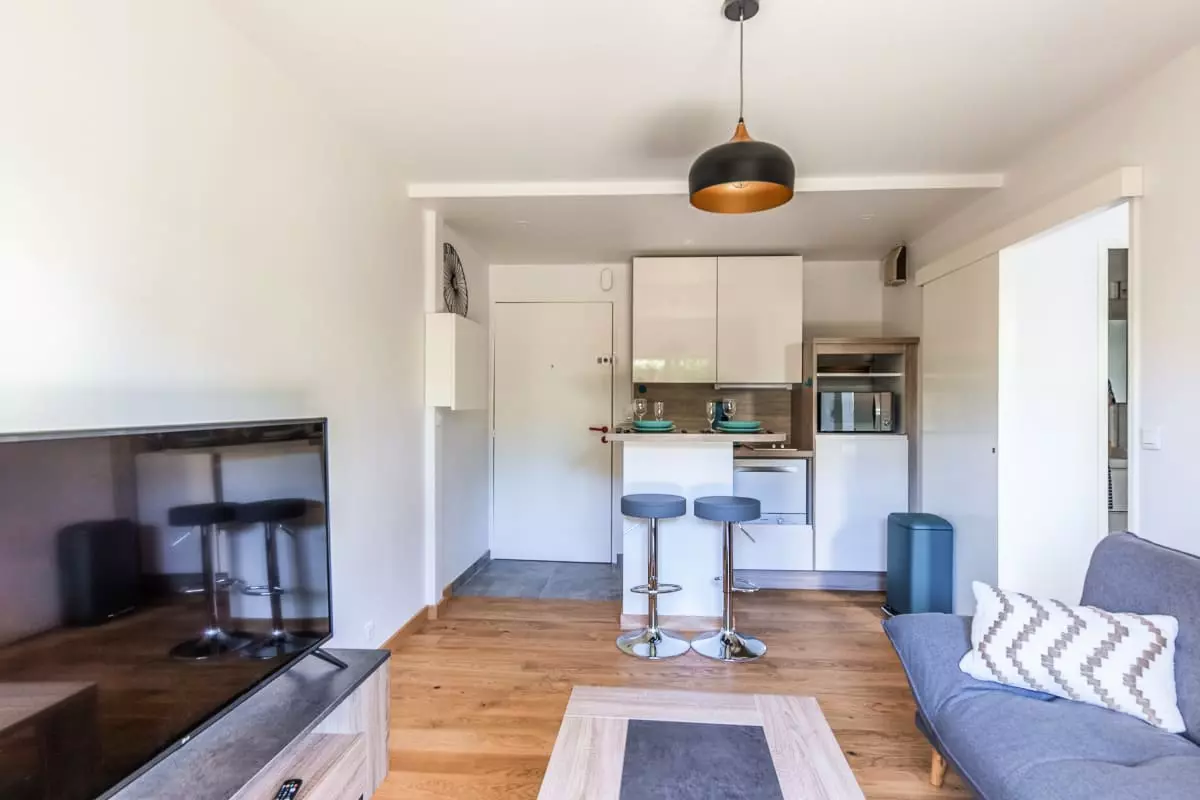 Dans une résidence donnant sur la plage, ce charmant appartement en rez-de-jardin peut accueillir jusqu'à 2 personnes.