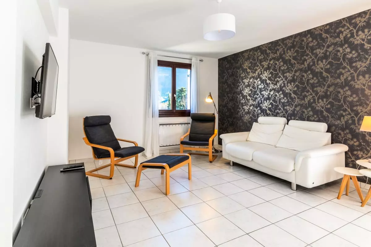 Situé dans un quartier résidentiel à Annecy le Vieux, au calme, vous serez au meilleur endroit pour profiter du lac d'Annecy et des montagnes. Vous trouverez de nombreux commerces à proximité (chocolatier, brasserie, fromager...) et pourrez atteindre le centre d'Annecy en quelques minutes. A seulement 100m des bords du lac, vous pourrez profiter de ses plages et des nombreux sports nautiques. Enfin, en 40 min, vous atteindrez les stations de ski.