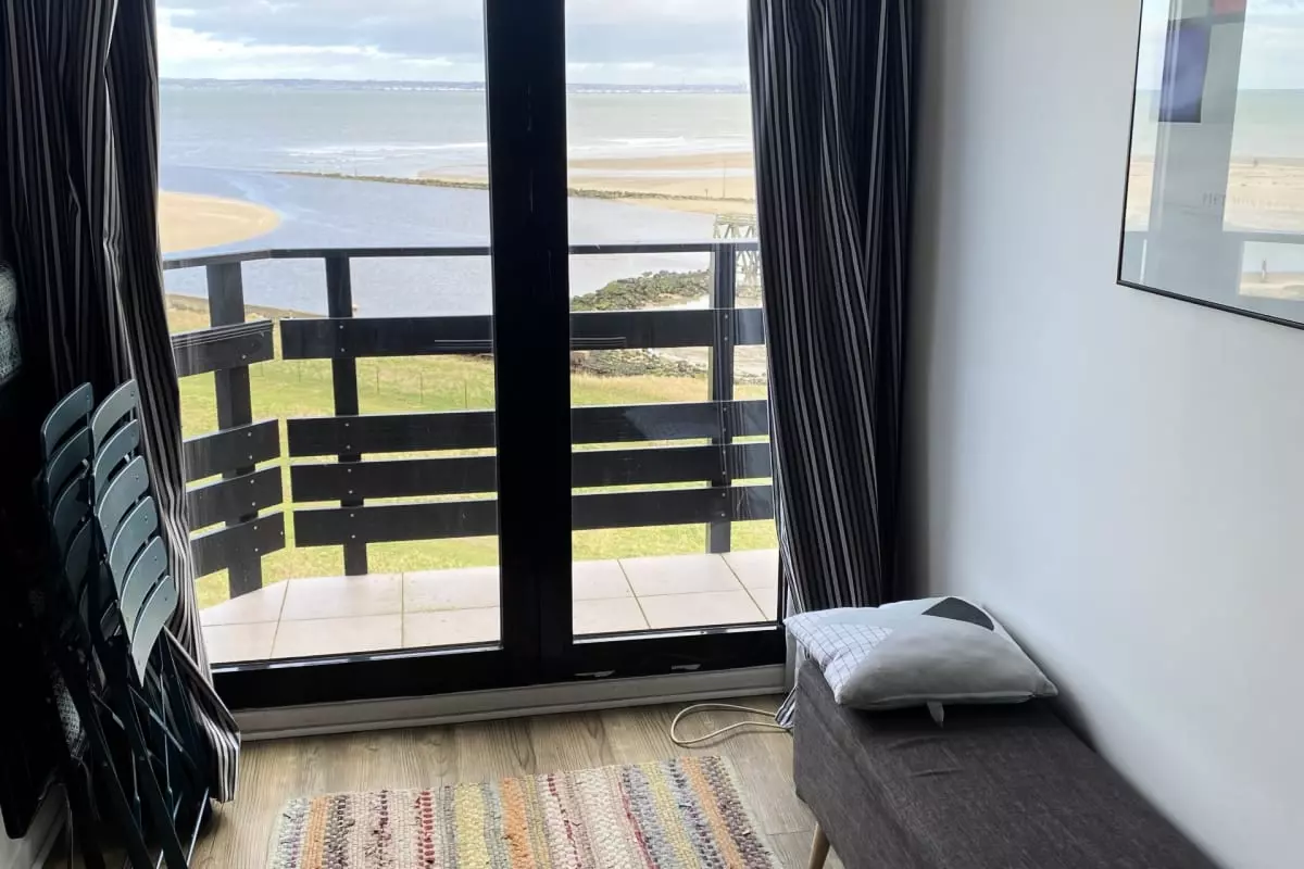 • Et un joli balcon avec une vue imprenable sur la plage et l'entrée des bateaux.