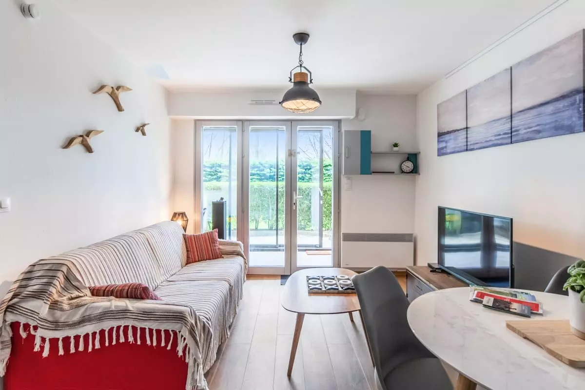 Dans une résidence calme de Villers-sur-Mer, à deux pas de la plage, ce bel appartement moderne avec loggia peut accueillir 4 personnes.